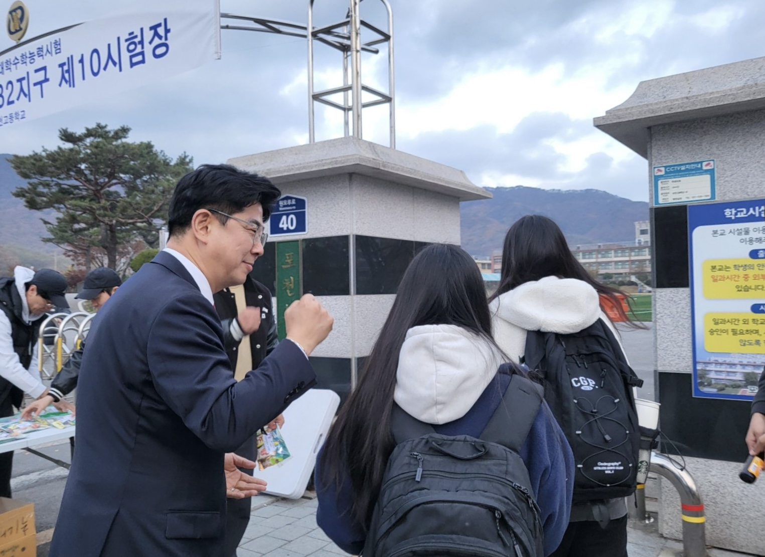 포천일고에서 시험을 치르는 197명의 남학생들과 포천고에서 시험을 치르는 223명의 여학생들을 비롯해 모든 수험생 여러분께, "모든 순간은 여러분의 것입니다. 최선을 다해 멋지게 도전하세요!"라고 힘찬 응원의 메시지를 전했습니다.