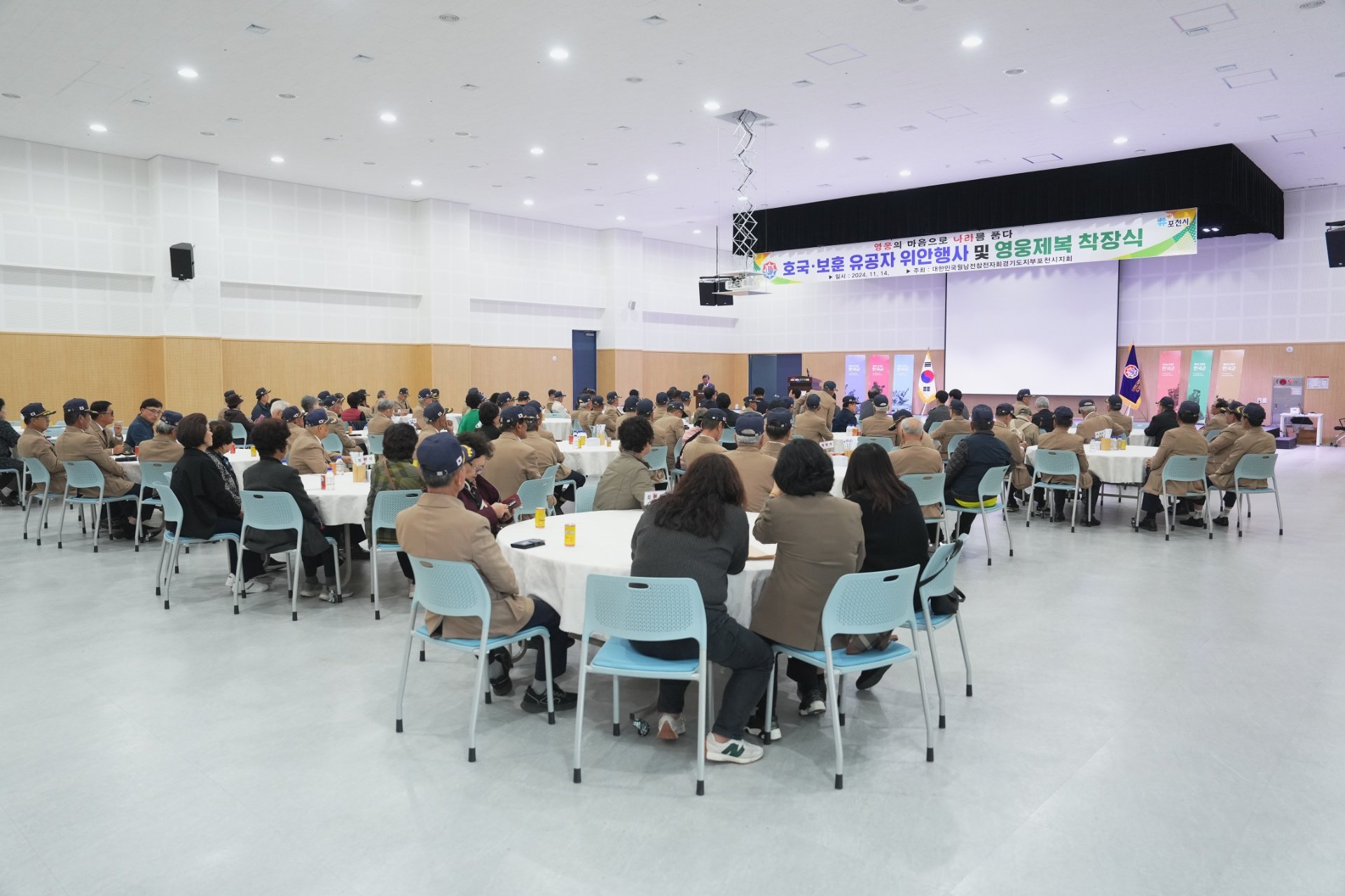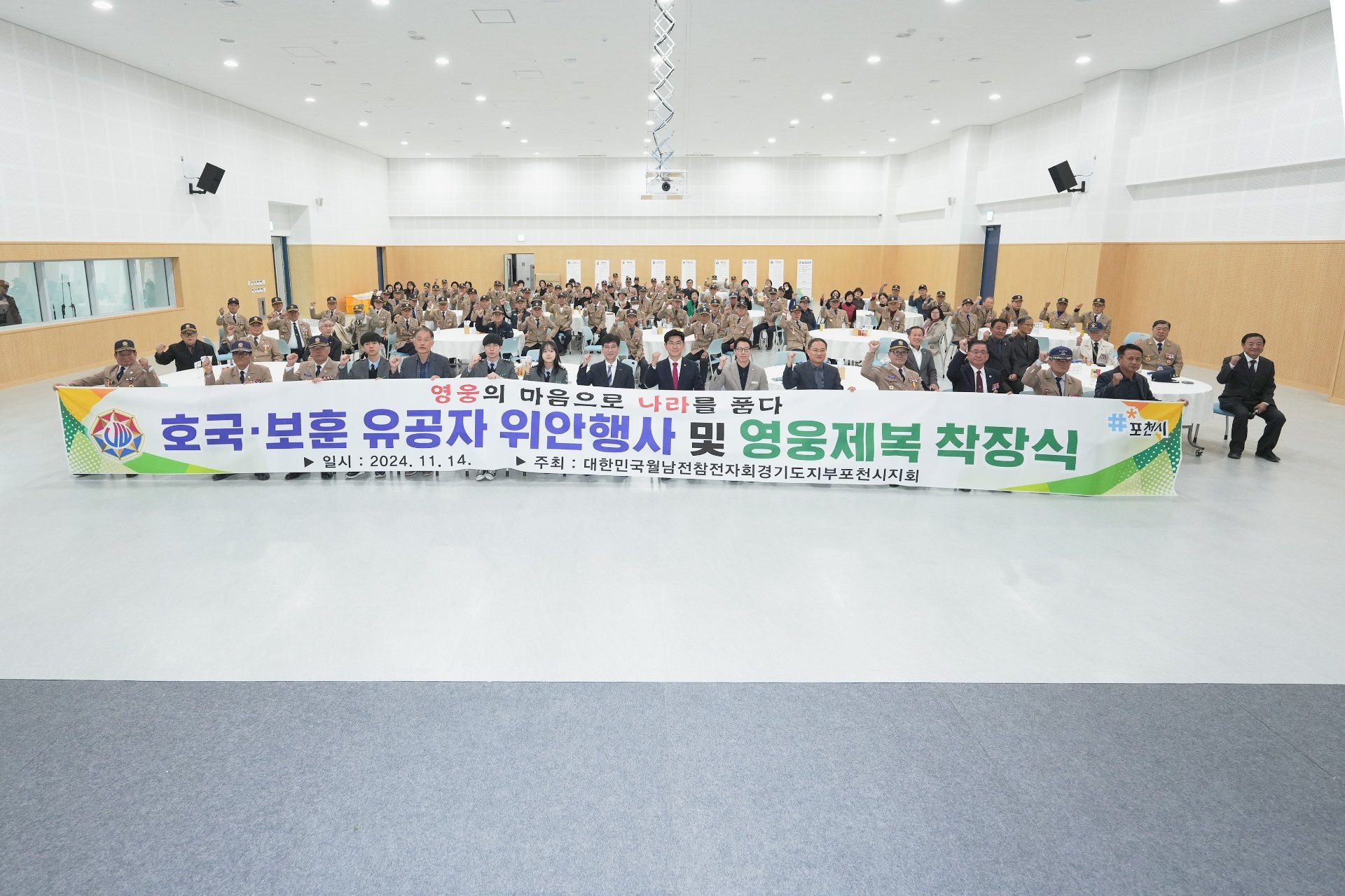 포천비즈니스센터에서 열린 호국 보훈 유공자 위안행사 및 영웅제복 착장식에 참석하여 뜻깊은 시간을 가졌습니다.