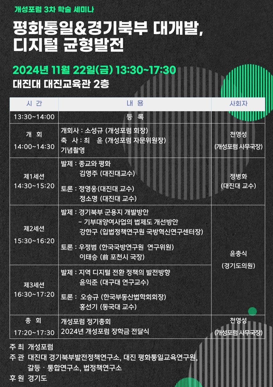 #개성포럼 #학술세미나 #정기총회 #노겸장학회 #평화통일 #경기북부대개발 #디지털균형발전 #대진대학교 #경기도의회 #윤충식