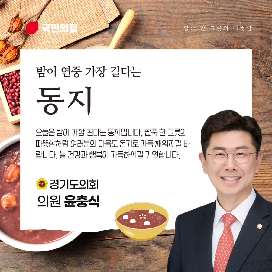 올 한 해 바쁘게 달려오시느라 많이 지치셨을 텐데, 오늘만큼은 팥죽 한 그릇의 따뜻함과 함께 잠시 여유를 가져보셨으면 합니다.