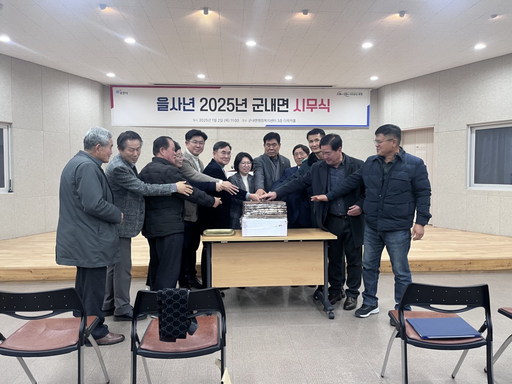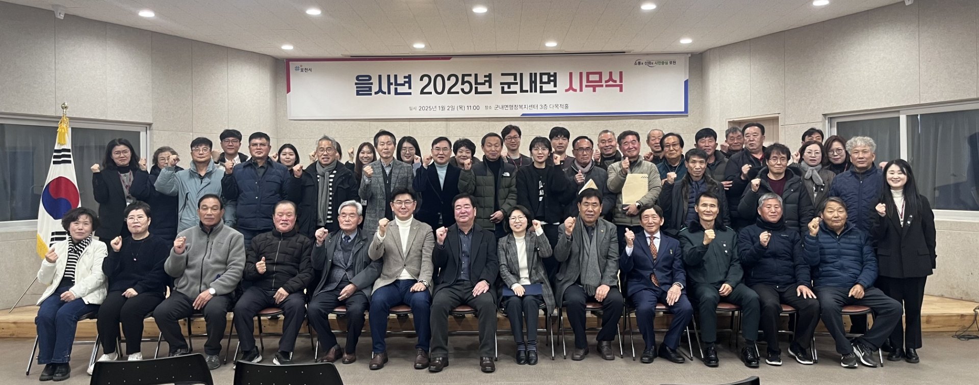 시무식은 새해를 맞이하며 지역의 발전과 화합을 다짐하는 뜻깊은 자리로, 이윤경 군내면장님을 비롯해 군내면을 이끌어가시는 분들이 모두 한자리에 모였습니다.