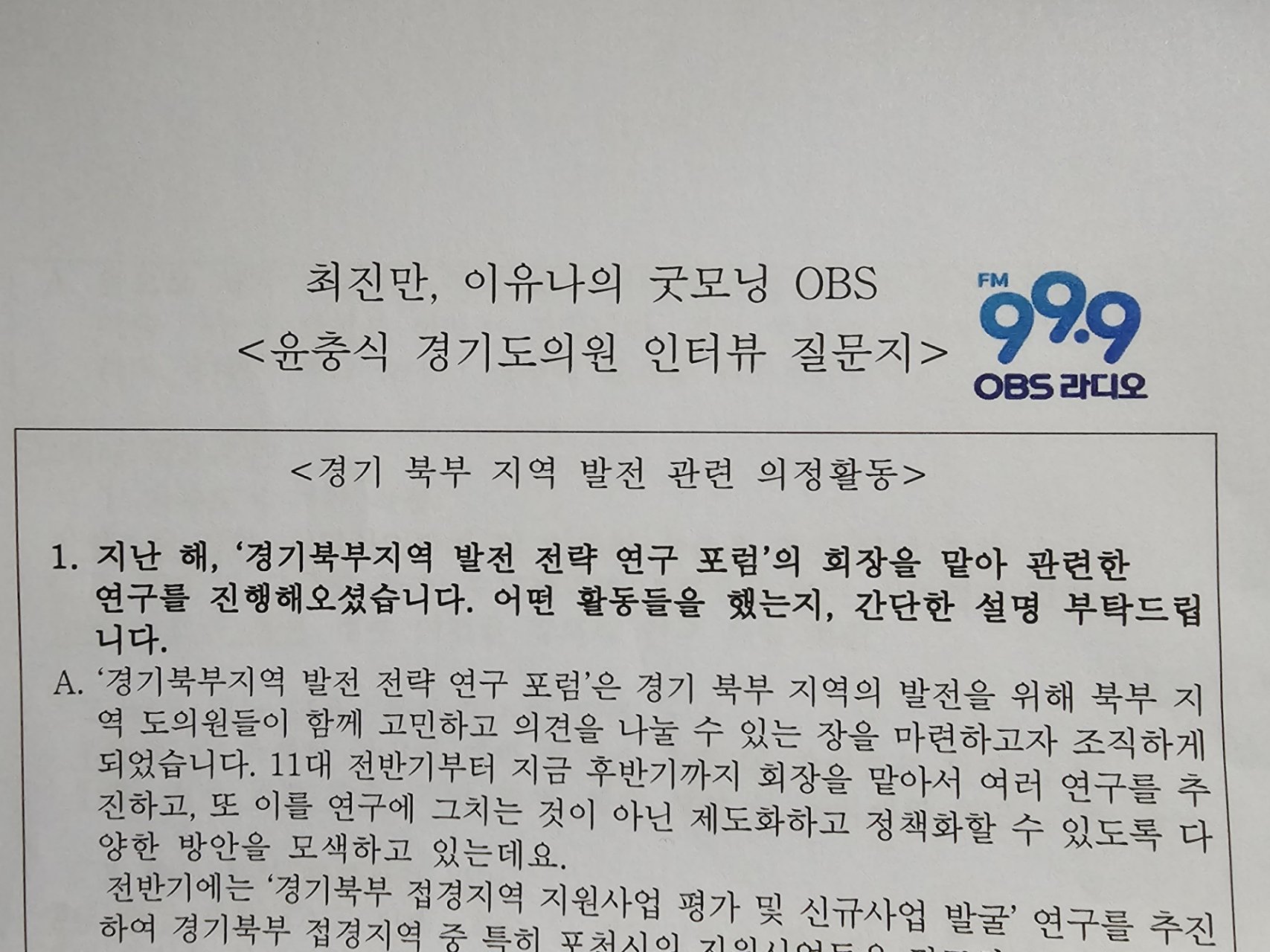 #OBS라디오 #FM99_9 #경기북부발전 #의원연구단체 #대진테크노파크 #굿모닝OBS #경기도의회 #소통 #윤충식