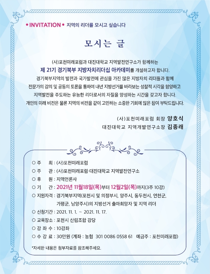 포천미래포럼, 지방자치리더쉽 아카데미소소한 일상들 2021. 11. 23. 23:06반응형SMALL