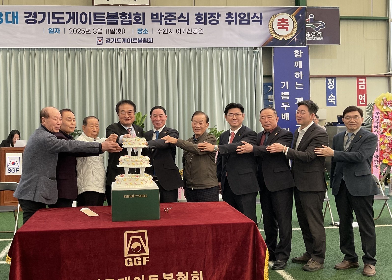 수원시 여기산공원 게이트볼구장에서 열린 제3대 경기도게이트볼협회 박준식 회장 취임식에 함께했습니다.