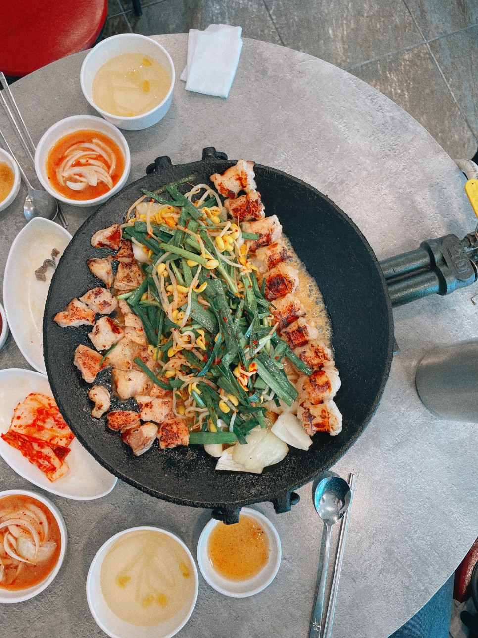 가운데 부추와 콩나물 무침도 함께 나왔습니다.