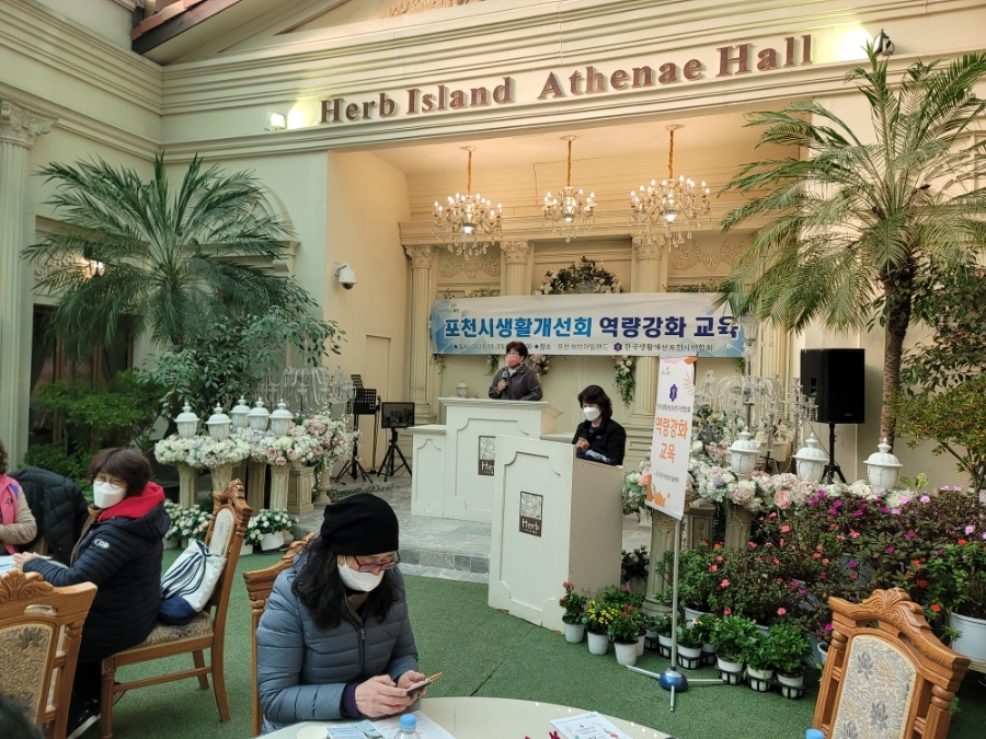 포천시생활개선회(회장 천병순) 역량강화교육이 허브아일랜드에서 이계숙 사무국장님의 사회로 천병순 회장님의 인삿말과 임원소개, 각 읍면동 회원 소개의 순으로 진행되었습니다.