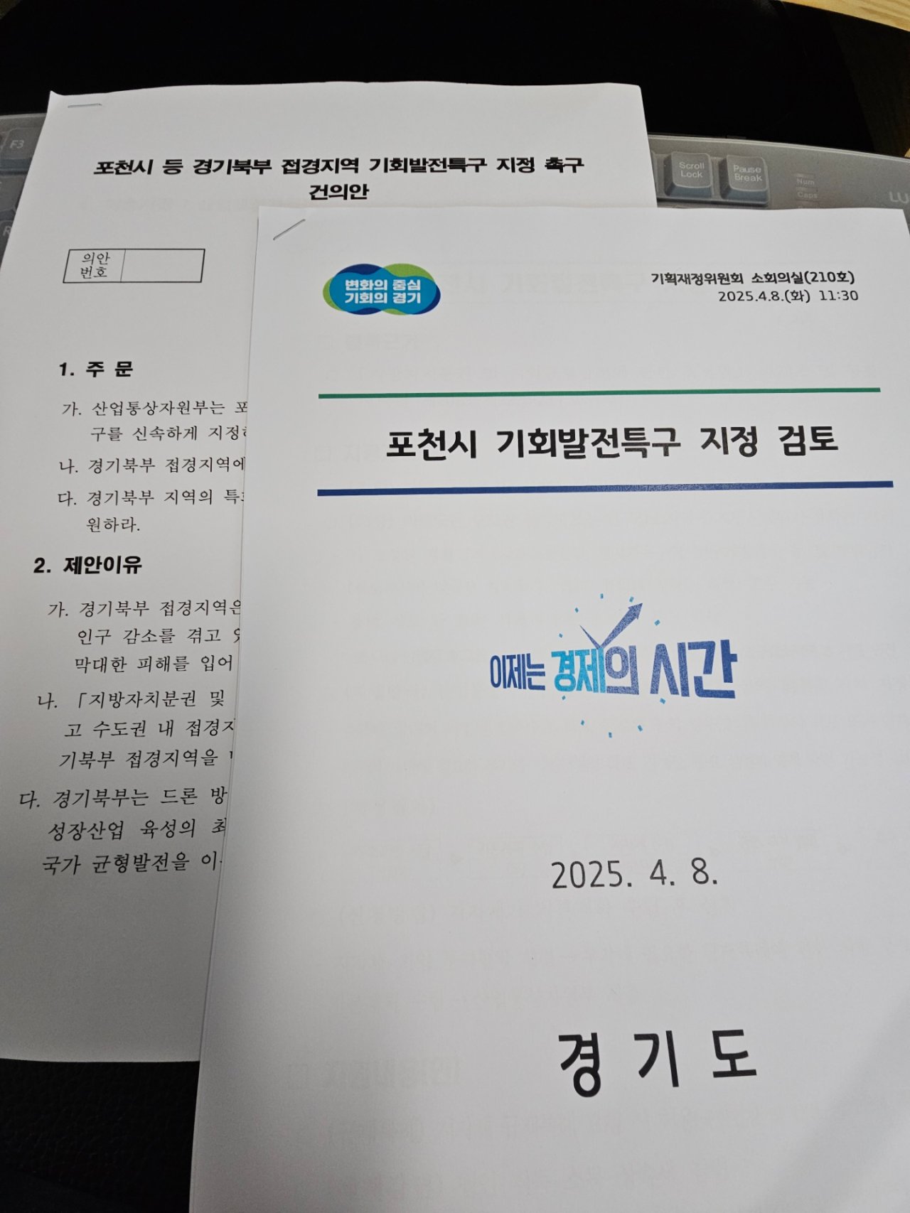 이날 정담회에서는 「포천시 등 경기북부 접경지역 기회발전특구 지정 촉구 제안서」가 기획재정위원회에 전달되었습니다.
