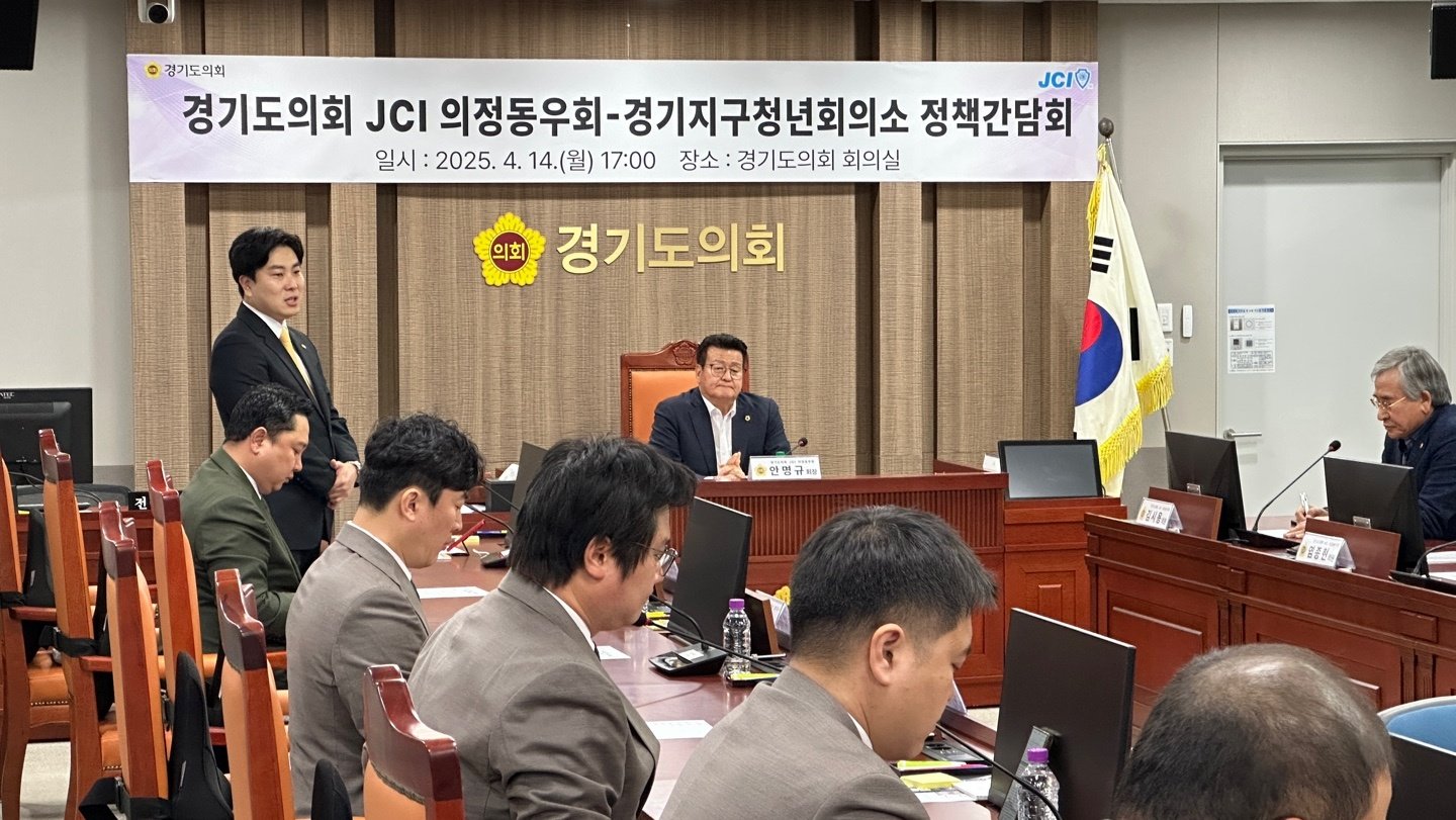 경기도의회 JC의정동우회(회장 안명규)와 경기지구JC(지구회장 전연수)가 한자리에 모여, 청년의 미래와 지역 발전을 위한 정책 간담회를 가졌습니다.