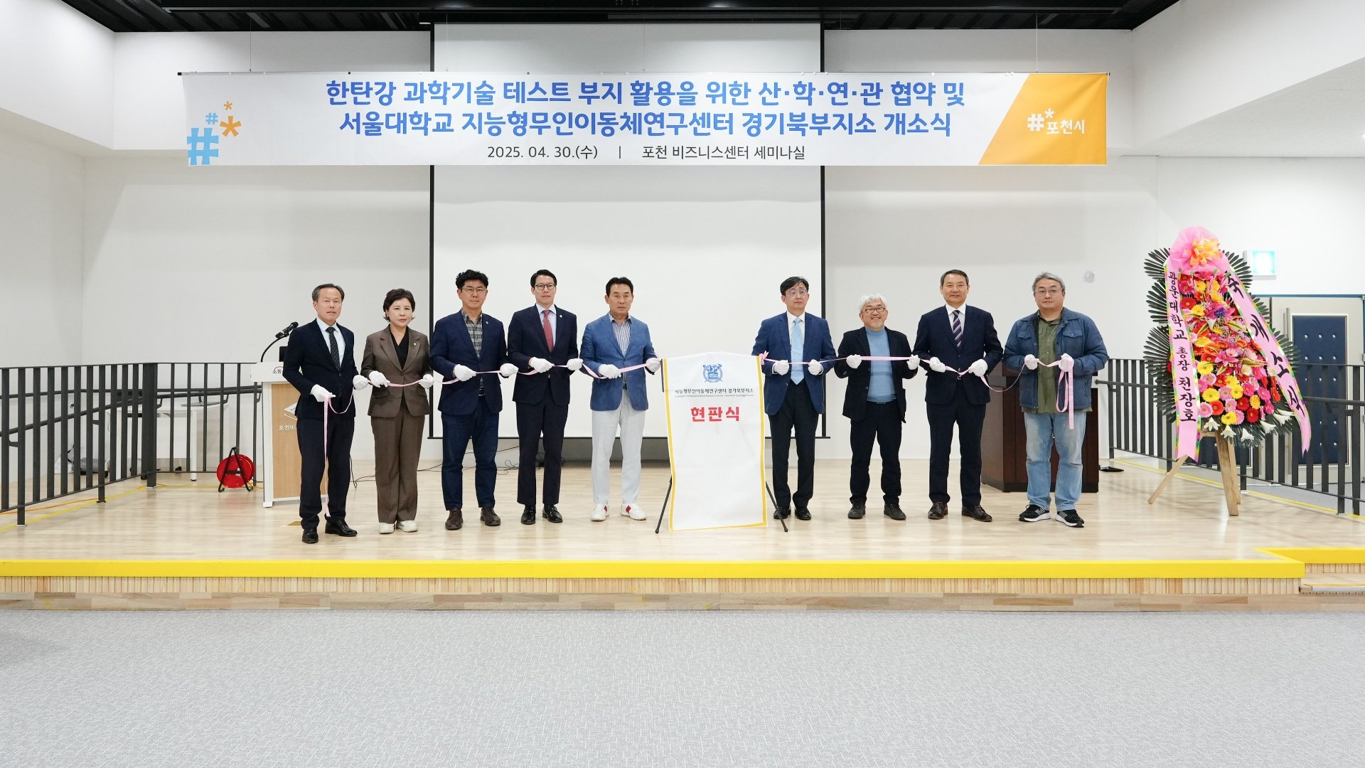 포천비즈니스센터에서 열린 서울대학교 지능형무인이동체연구센터 경기북부지소 개소식에 참석했습니다.