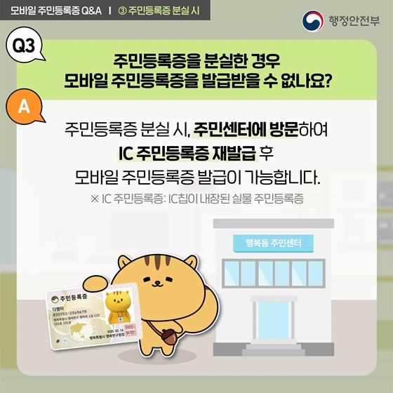 Q3. 주민등록증을 분실한 경우에도 모바일 주민등록증을 받을 수 있나요?