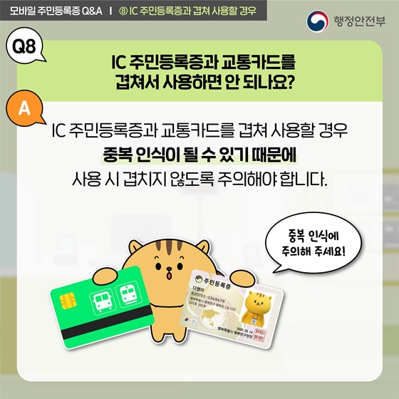 Q8. IC 주민등록증과 교통카드를 함께 사용해도 되나요?