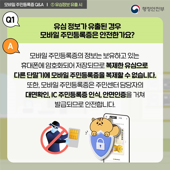Q1. 유심 정보가 유출되면 모바일 주민등록증도 위험한가요?