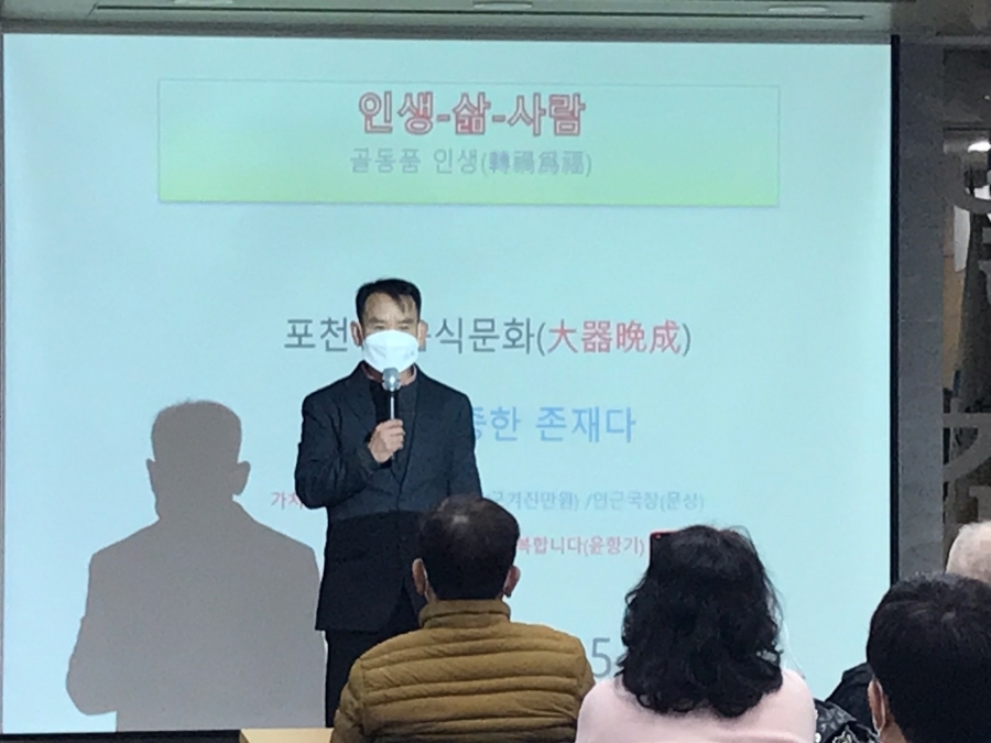 사)한국음식업중앙회 경기도지회 포천시지부 이호용 사묵국장님으로부터 음식과 사람이란 주제로 유머가 넘치고 생동감있는 강의가 있었습니다.