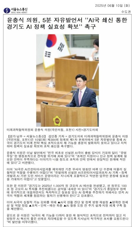 AI는 선택이 아닌 필수입니다. 경기도의 AI 정책이 실효성 있게 작동하기 위해선 현실적 기반과 과감한 실행력이 필요합니다.
