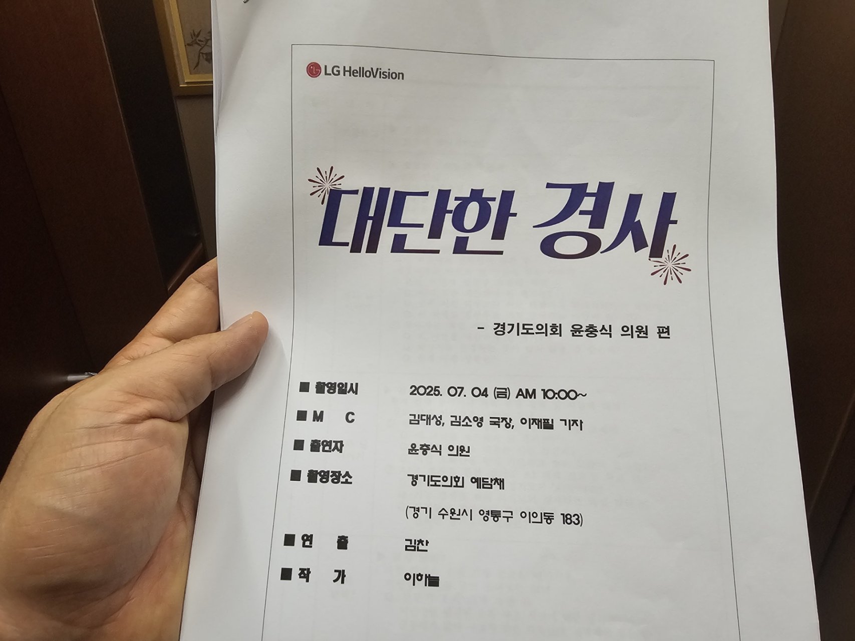 윤충식 경기도의원 LG Hello vision '대단한 경사' 녹화카테고리 없음 2025. 7. 5. 10:31반응형SMALL