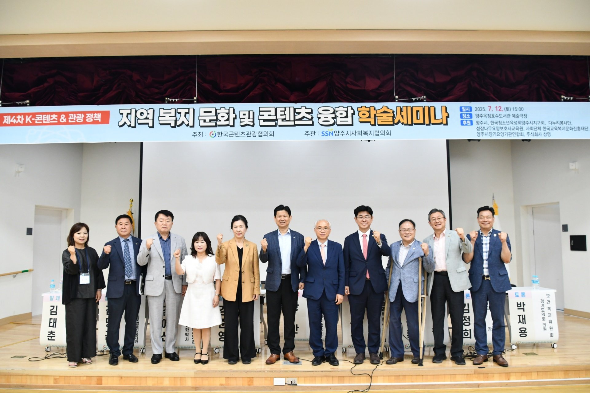 한국콘텐츠관광협의회(회장 이규건) 주최, 양주시사회복지협의회(회장 황산) 주관으로 열린 『지역복지문화, 콘텐츠 융합 학술세미나』에 패널로 참석해 지역문화와 복지, 그리고 콘텐츠 산업의 융합 가능성에 대해 다양한 의견을 나누었습니다.