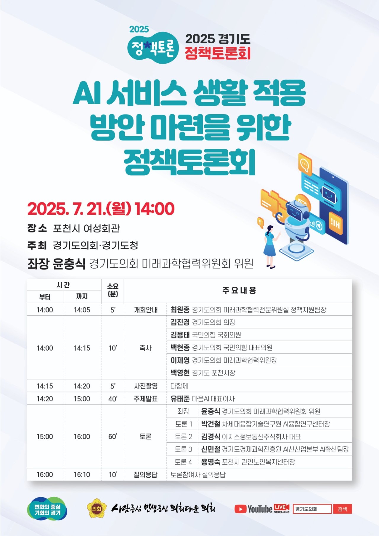 #경기도정책토론회 #AI서비스 #인공지능 #생활적용 #정책제안 #포천여성회관 #경기도의회 #미래과학협력위원회 #윤충식 #수호1004윤충식반응형LIST