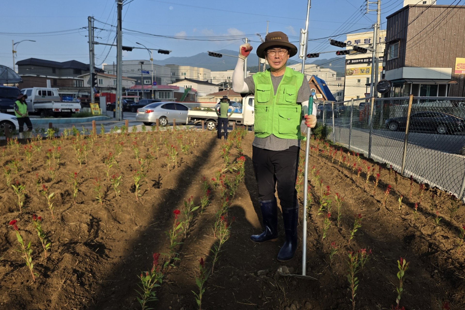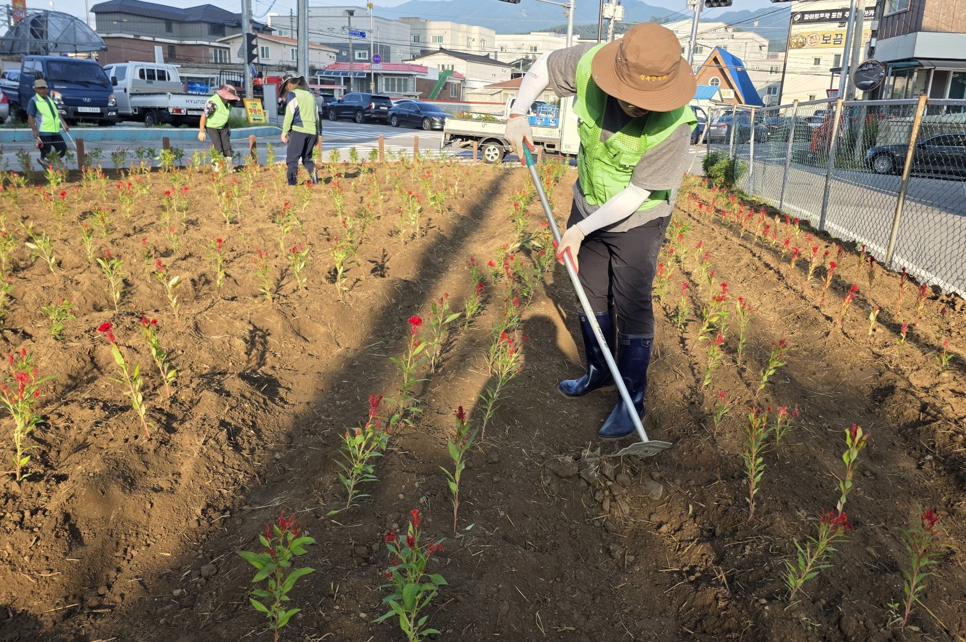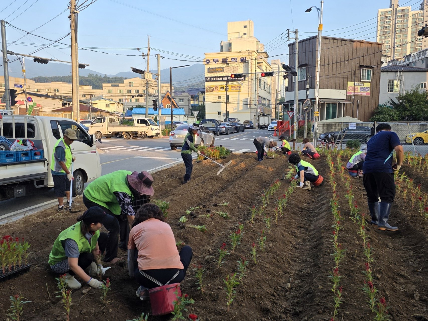 📸 포천동 자연보호협의회, 새벽부터 맨드라미 꽃밭 조성 🌸