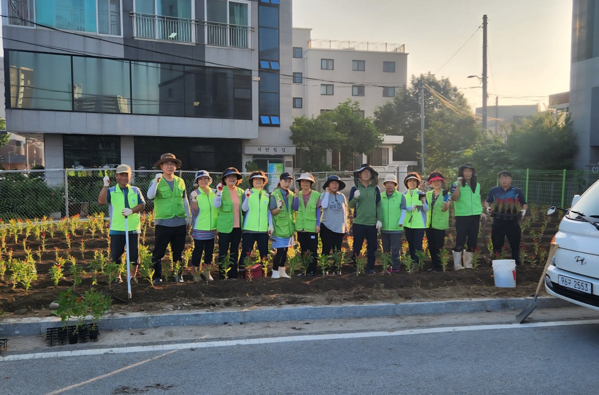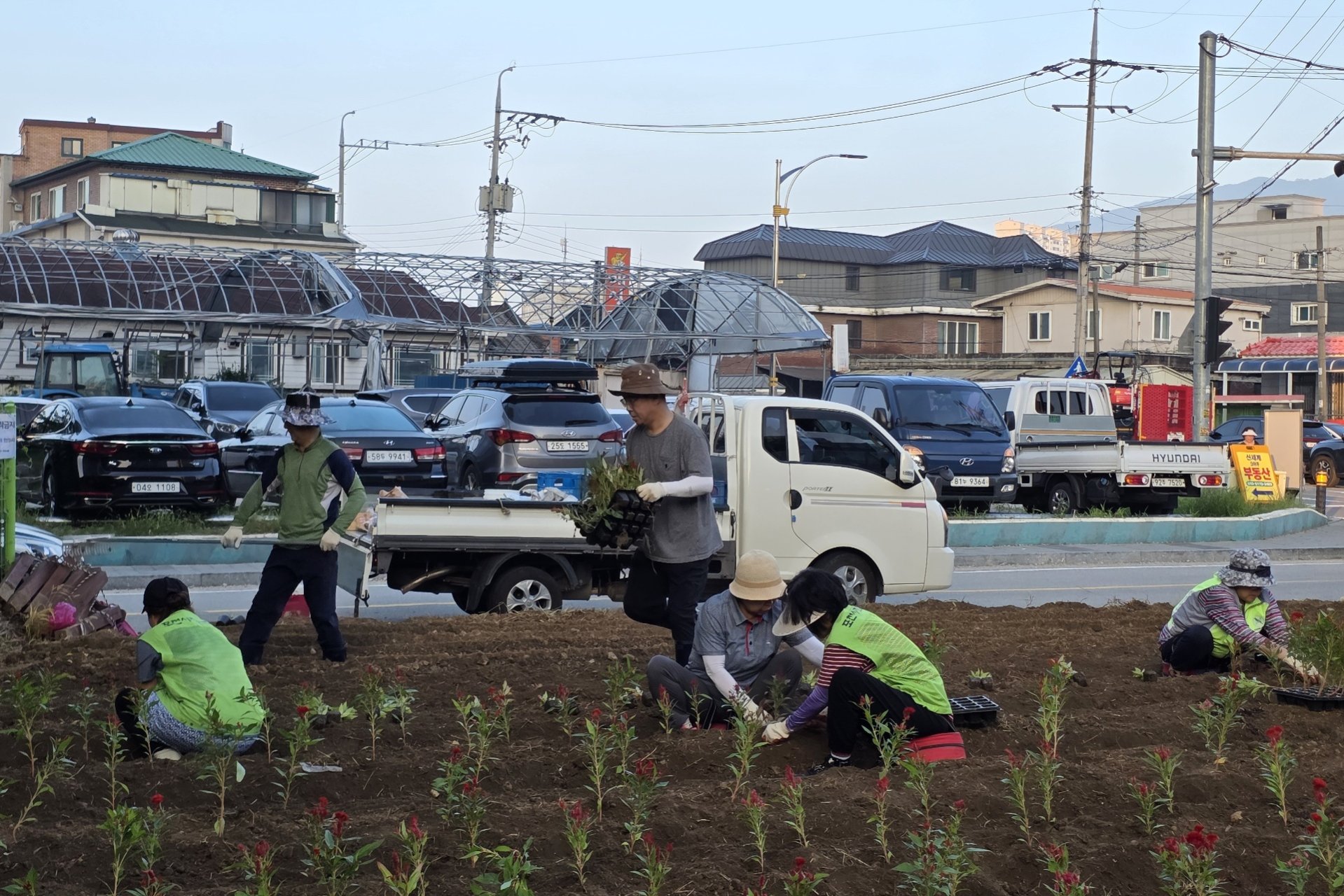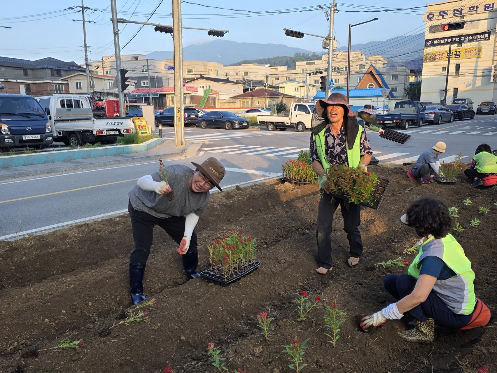 📸 포천동 자연보호협의회, 새벽부터 맨드라미 꽃밭 조성 🌸