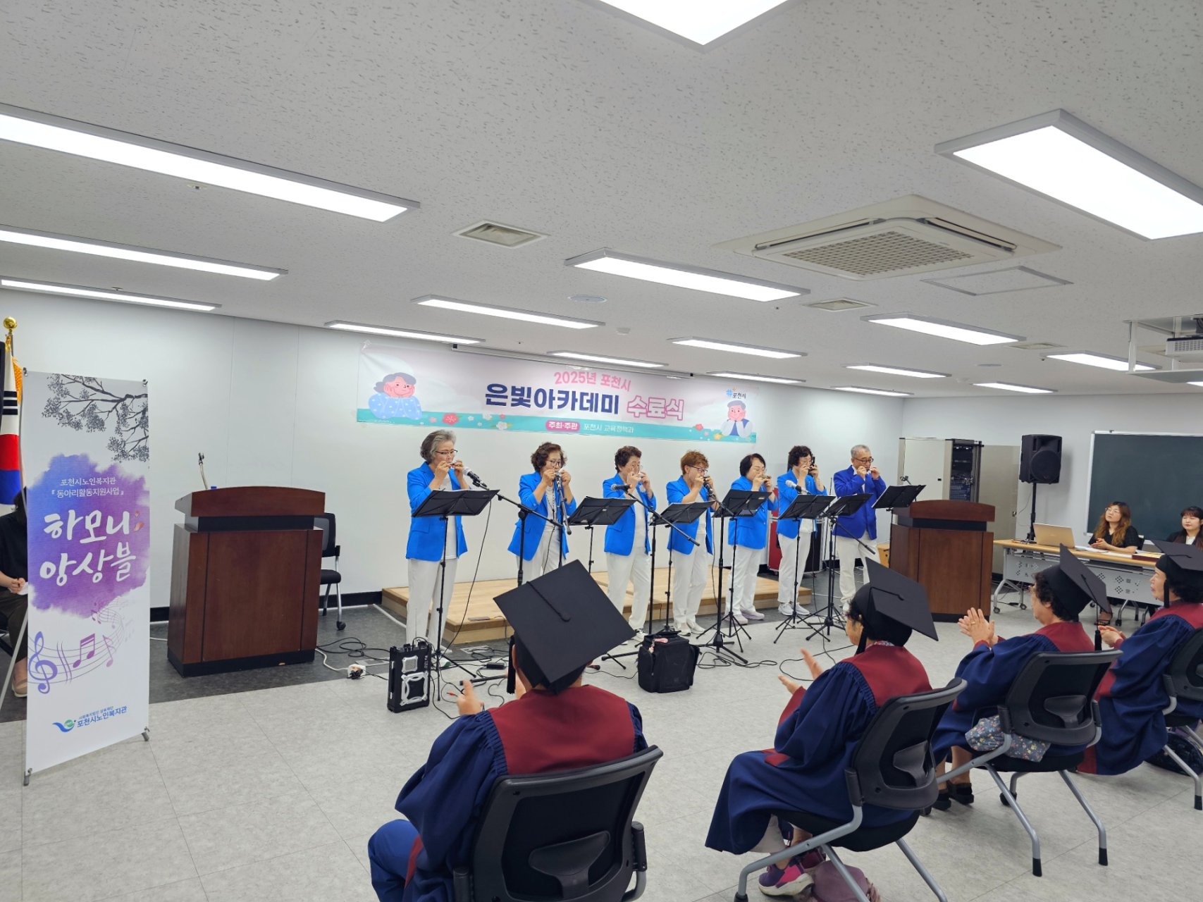 포천시노인복지관 하모니 앙상블의 멋진 축하공연으로 시작된 이번 행사는 수료장·감사장 전달과 내빈 인사말, 단체사진 촬영으로 이어지며 따뜻한 분위기 속에 진행되었습니다.