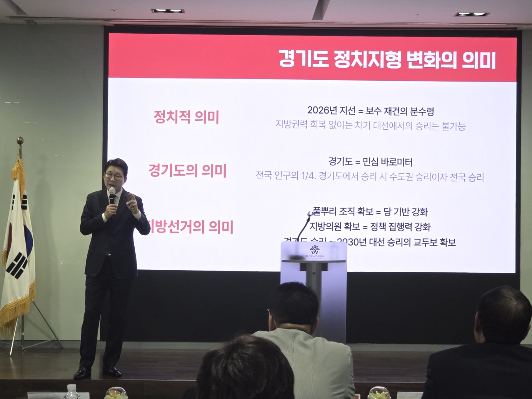 특강에서 “경기도는 민심의 바로미터”라며 민생을 최우선에 두고 내년 지방선거를 반드시 승리로 이끌자고 강조하셨습니다.