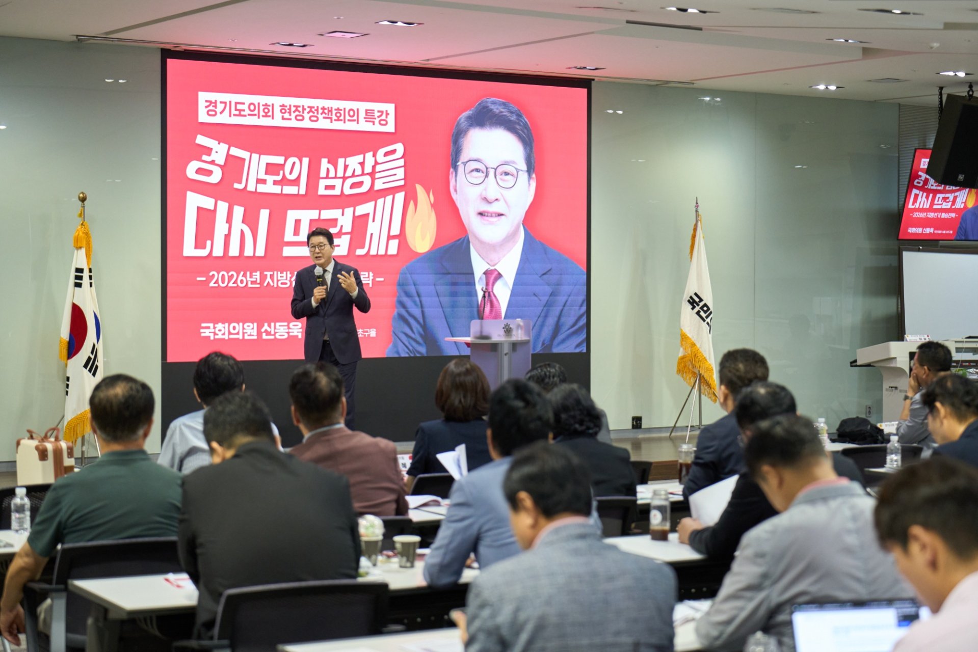 이어서 '경기도의 심장을 다시 뜨겁게! -2026년 지방선거 필승전략-'이란 주제로 신동욱 국민의힘 수석최고위원의 정책특강이 어어졌습니다.