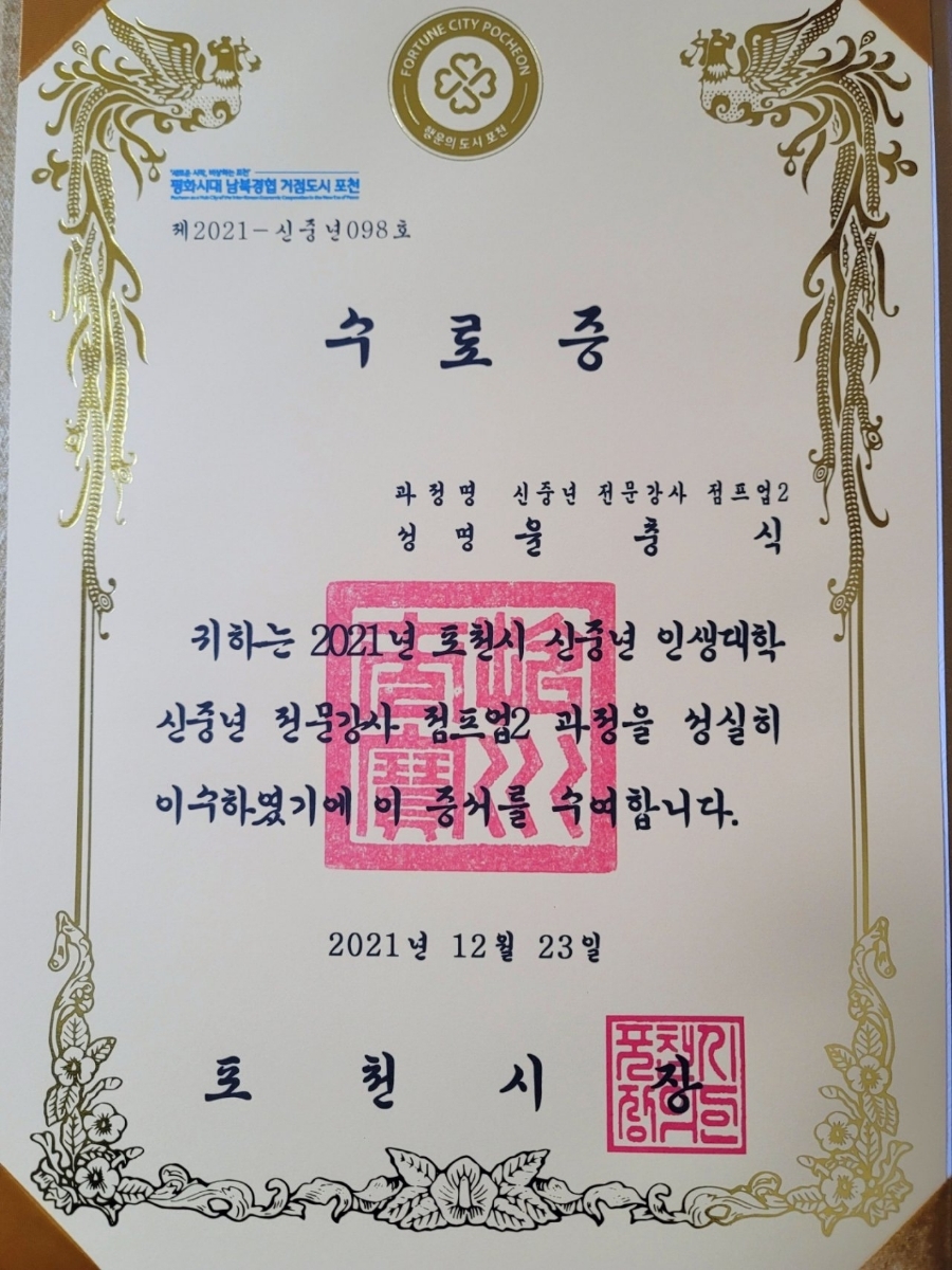 포천시 신중년 인생대학 수료식 및 정담회소소한 일상들 2022. 1. 16. 19:22반응형SMALL