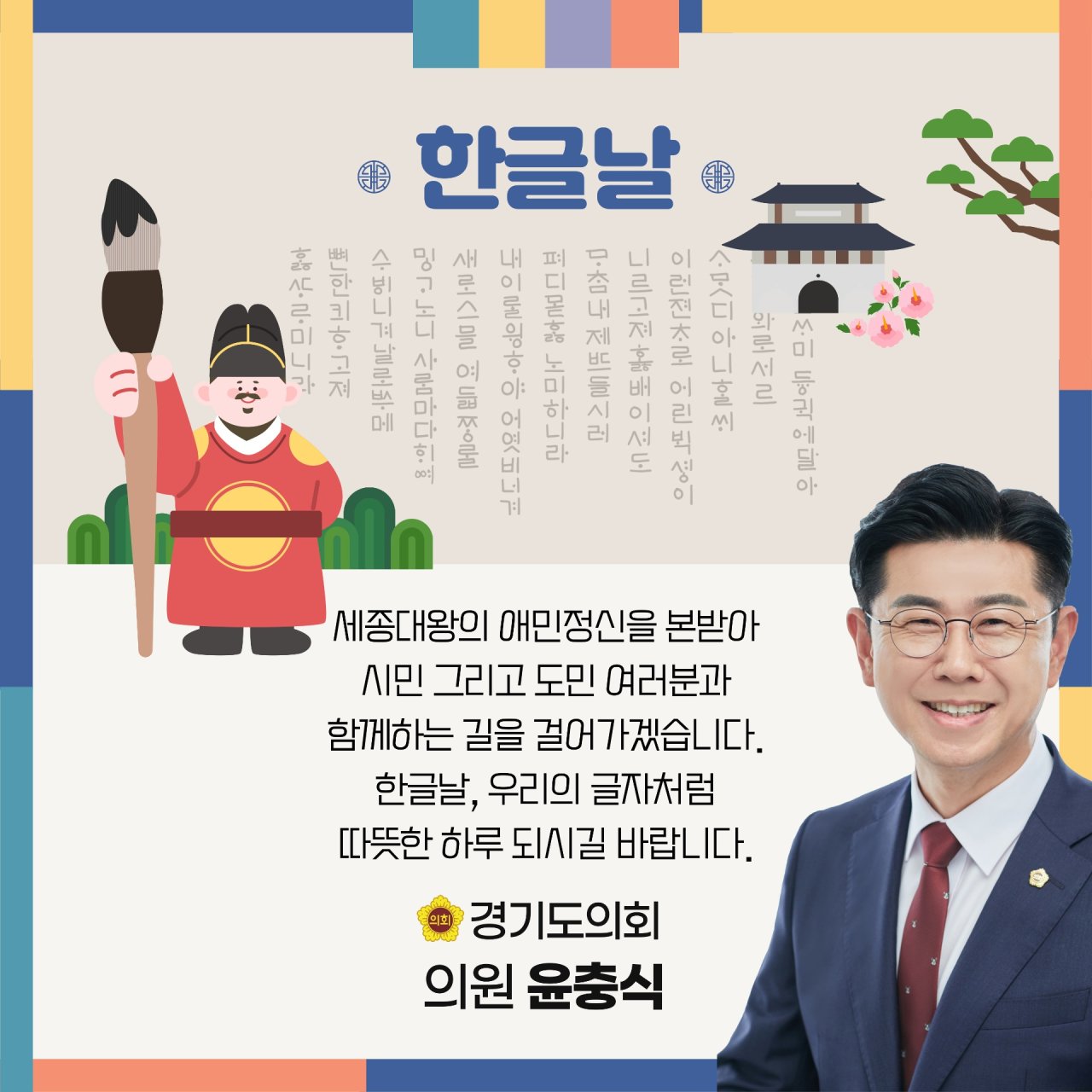 #한글날 #세종대왕 #훈민정음 #우리글자 #문화유산 #경기도의회 #경기도의원 #윤충식 #수호1004윤충식 #윤충식경기도의원