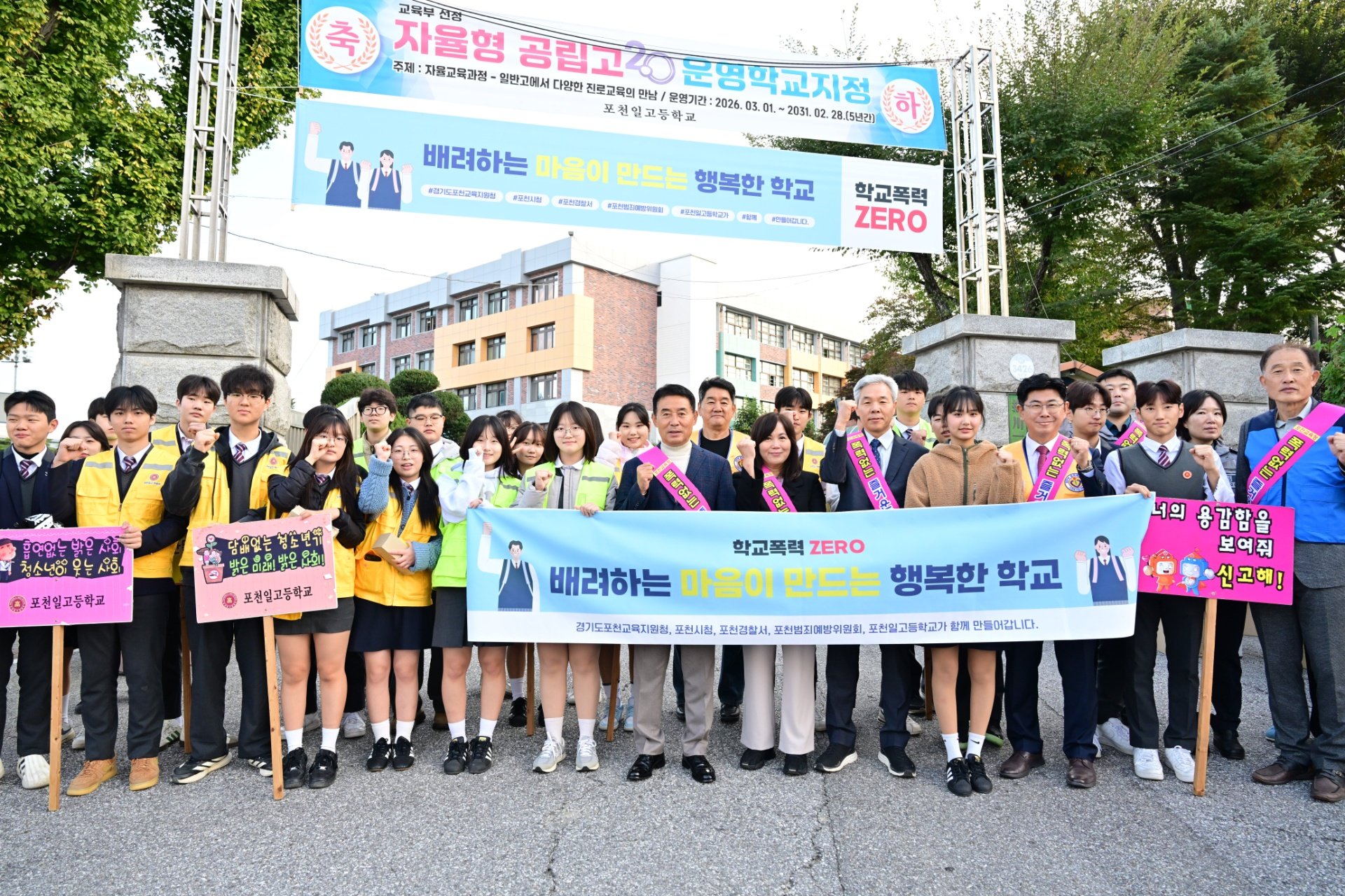 이번 캠페인은 경기도포천교육지원청, 포천시청, 포천경찰서, 포천범죄예방위원회, 그리고 포천일고등학교 학생들이 함께해 학교폭력 없는 안전한 교육환경을 만들자는 뜻을 모은 소중한 자리였습니다.