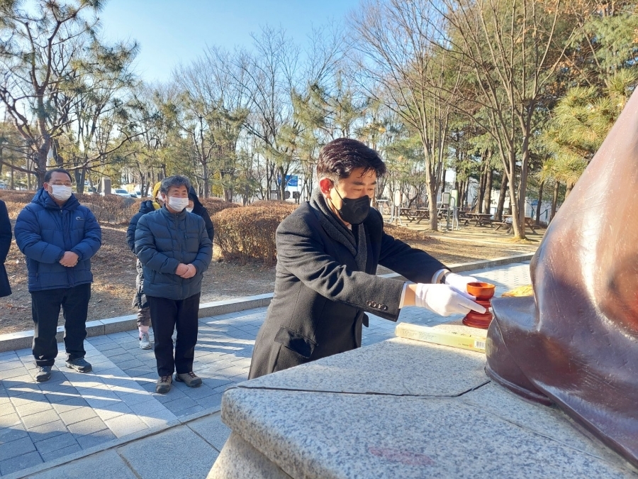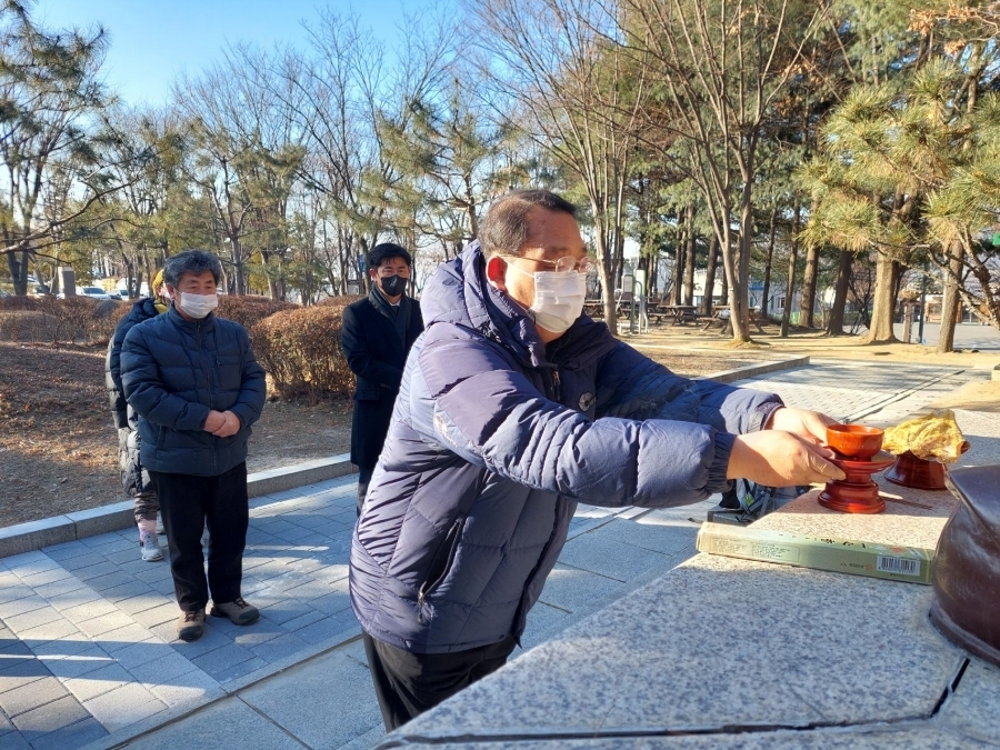 면암 선생님께서 순국하신 양력일자 1907년 1월 1일에 맞춰 순국 115주년 추모 참배식을 포천 청성체육공원내 선생님의 동상앞에 모여 실시 하였습니다.