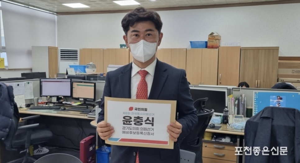 윤 후보의 선거구는 포천시 제1선거구로 군내면, 창수면, 영중면, 영북면, 관인면, 포천동 선단동이 지역구다.