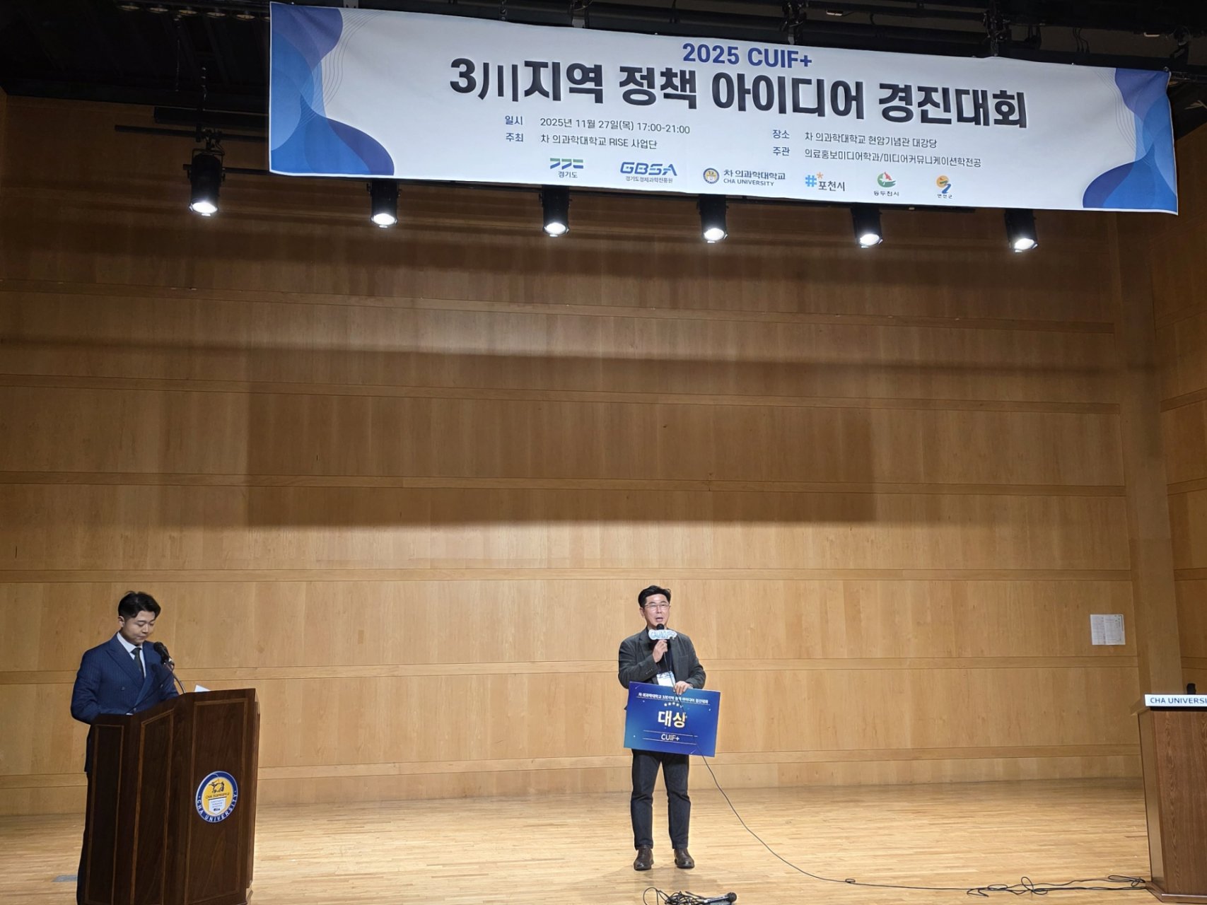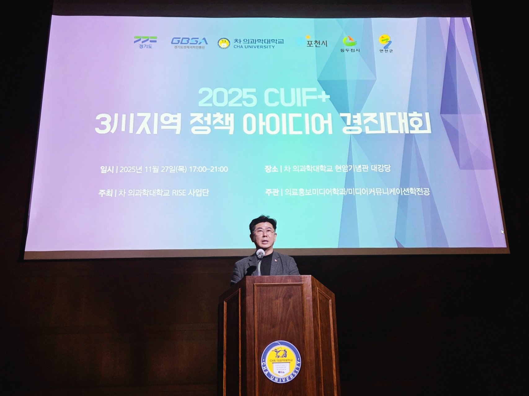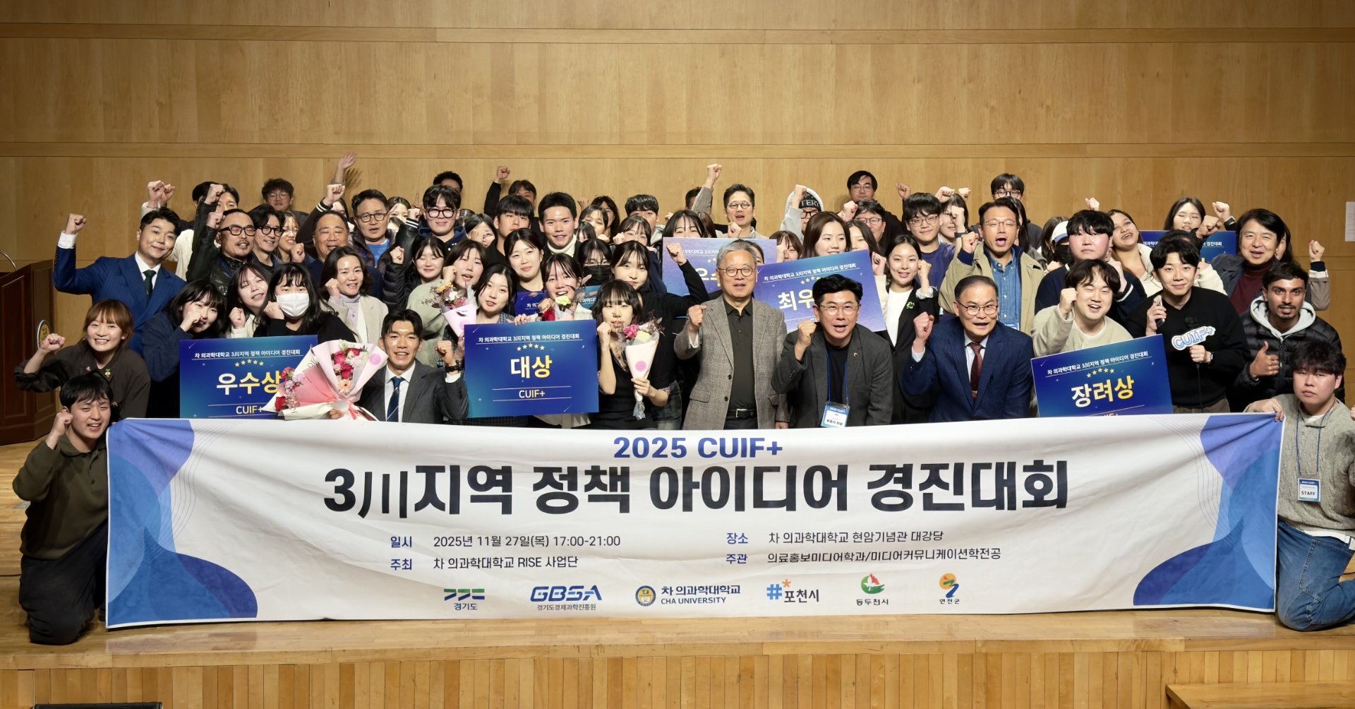 차의과학대학교(총장 서영거) RISE사업단(단장 박노일)이 주최한 2025 CUIF+ 정책아이디어 경진대회에 참석해 지역 미래를 위한 청년들의 도전과 열정을 함께 응원했습니다.