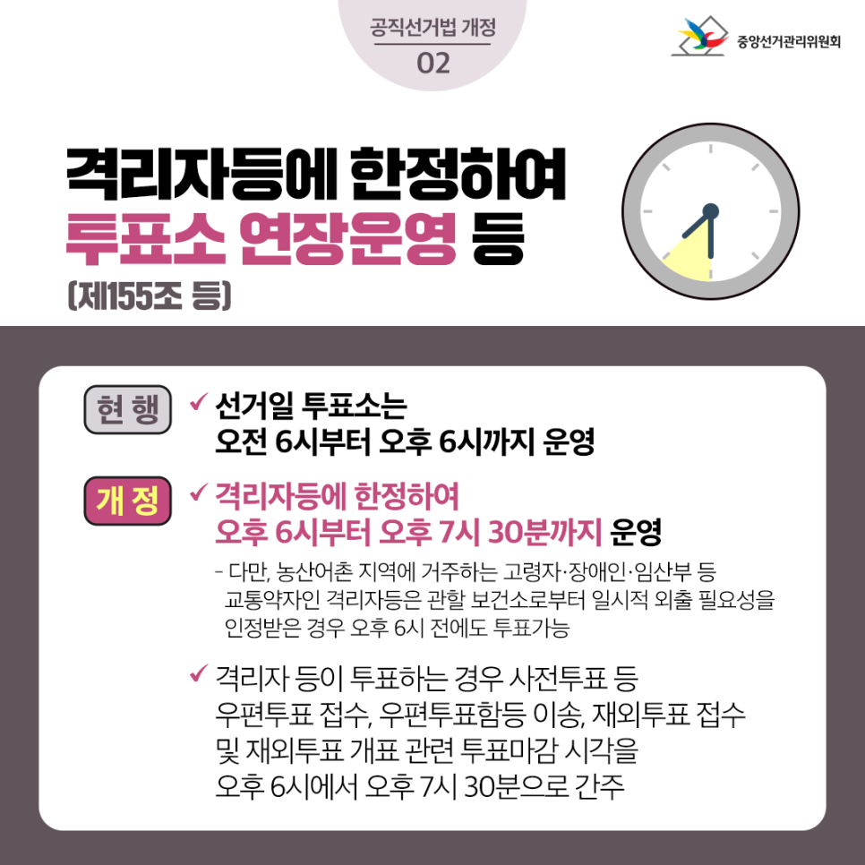 격리자 등에 한정하여 투표소 연장운영 등 (제155조 등)