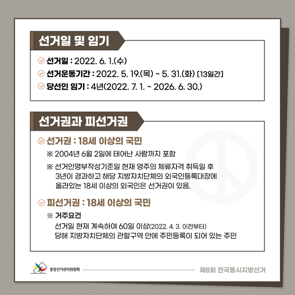 ※ 거주요건 : 선거일 현재 계속하여 60일 이상(2022. 4. 3. 이전부터)