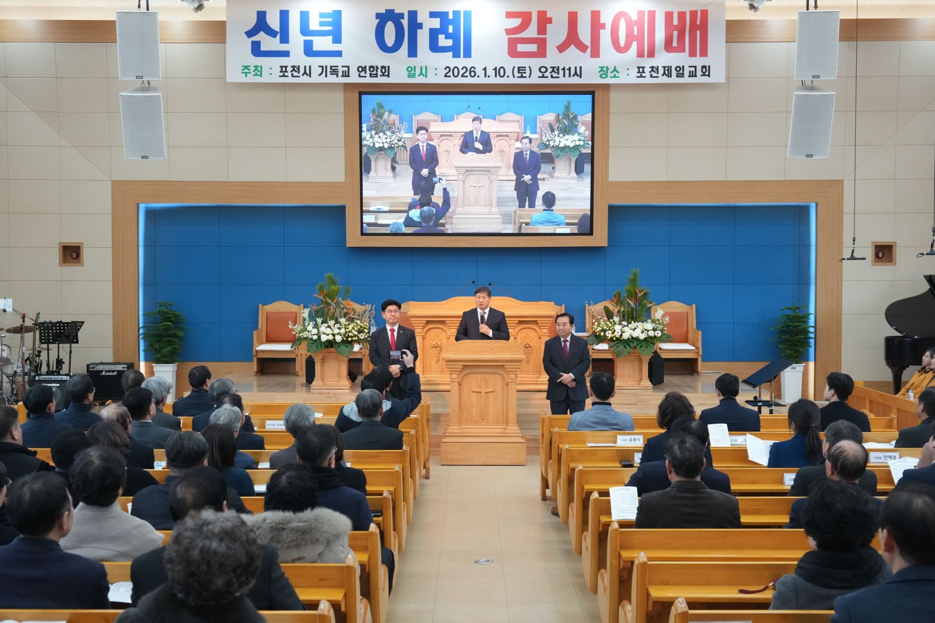 지역 교회와 성도님들이 한자리에 모여 예배드리며, 새해 포천시의 발전과 시민 한 분 한 분의 건강과 행복을 위해 함께 기도하는 뜻깊은 시간이었습니다.