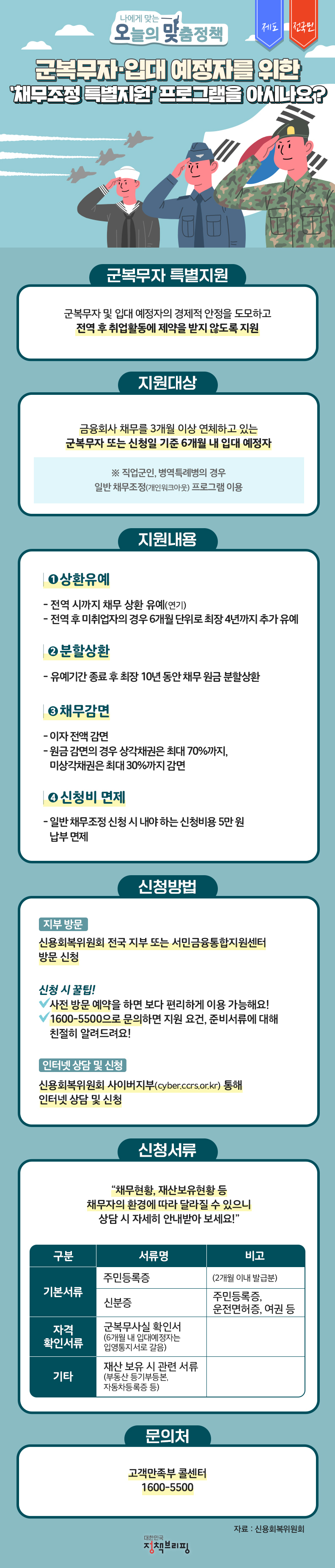 ※ 직업군인, 병역특례병의 경우 일반 채무조정(개인워크아웃) 프로그램 이용