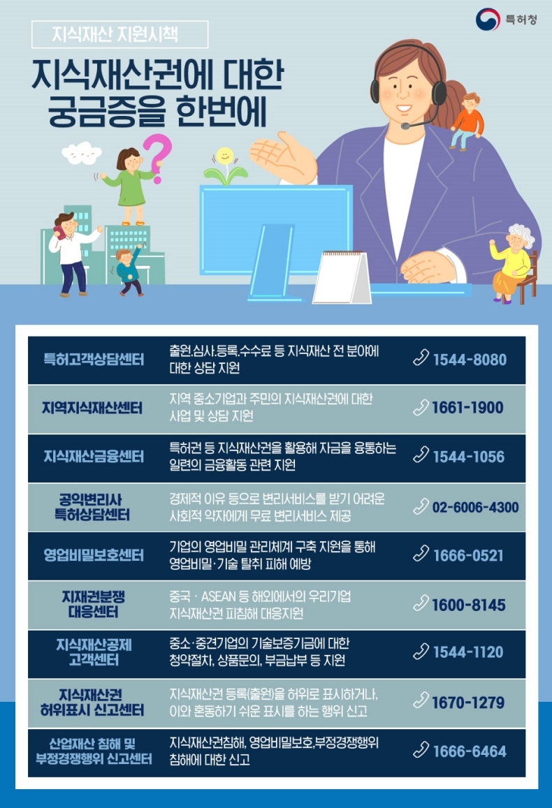 지식재산권 지원사업에서 궁금한 내용이 있을 때 지원시책의 센터로 문의해 주세요!