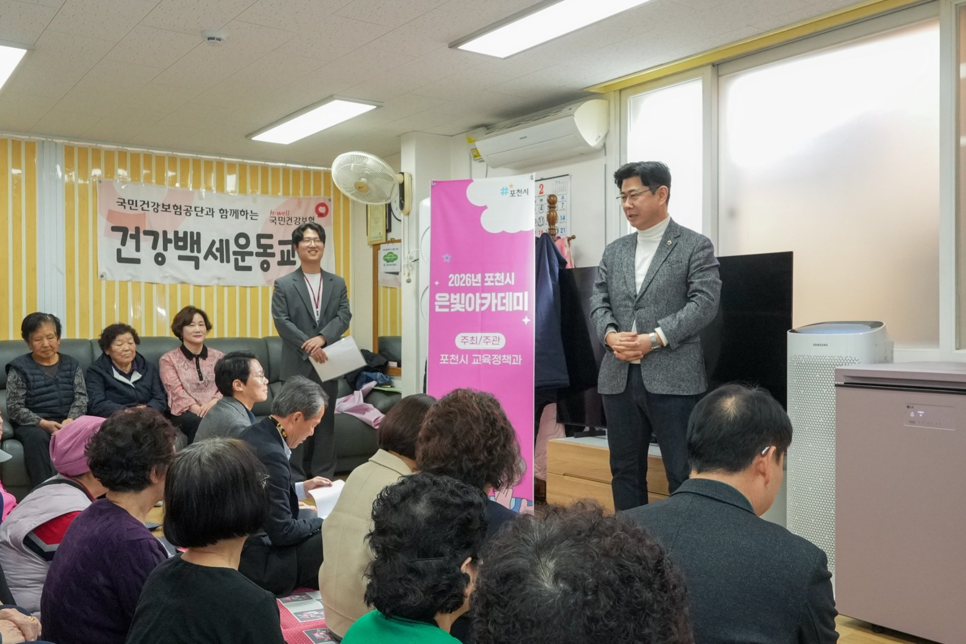 운천6리 경로당(회장 임순옥)에서 열린 은빛아카데미 개강식에 함께해 어르신들께 인사드렸습니다.