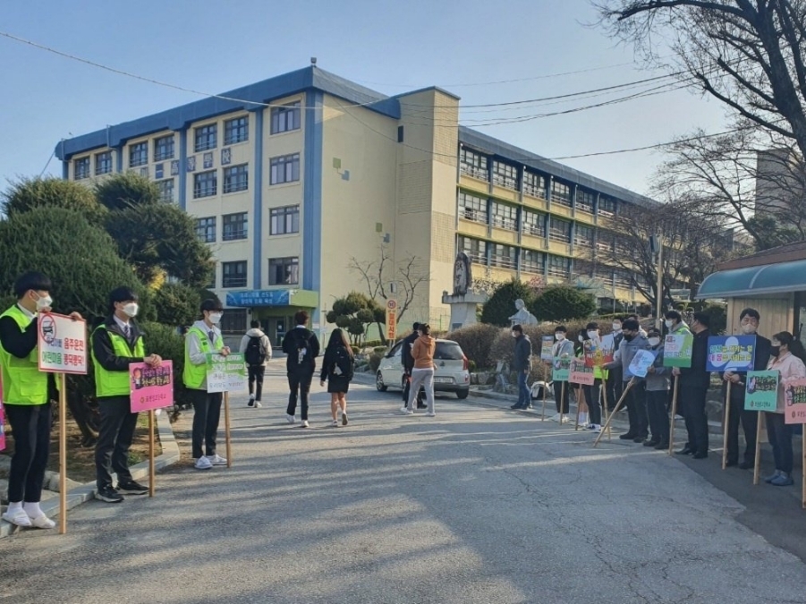 포천일고, 법무부 청소년 범죄예방위원 포천지구위원회, 포천경찰서가 함께하는 캠페인을 등교 시간에 맞춰 진행하였습니다.