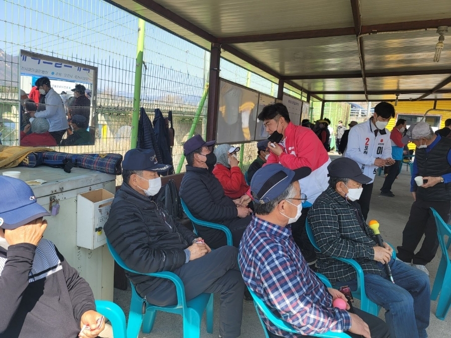 걷기, 게이트볼, 탁구, 테니스, 족구, 파크골프, 당구대회장에 찾아가 회원분들과 시민분들께 인사드렸습니다.