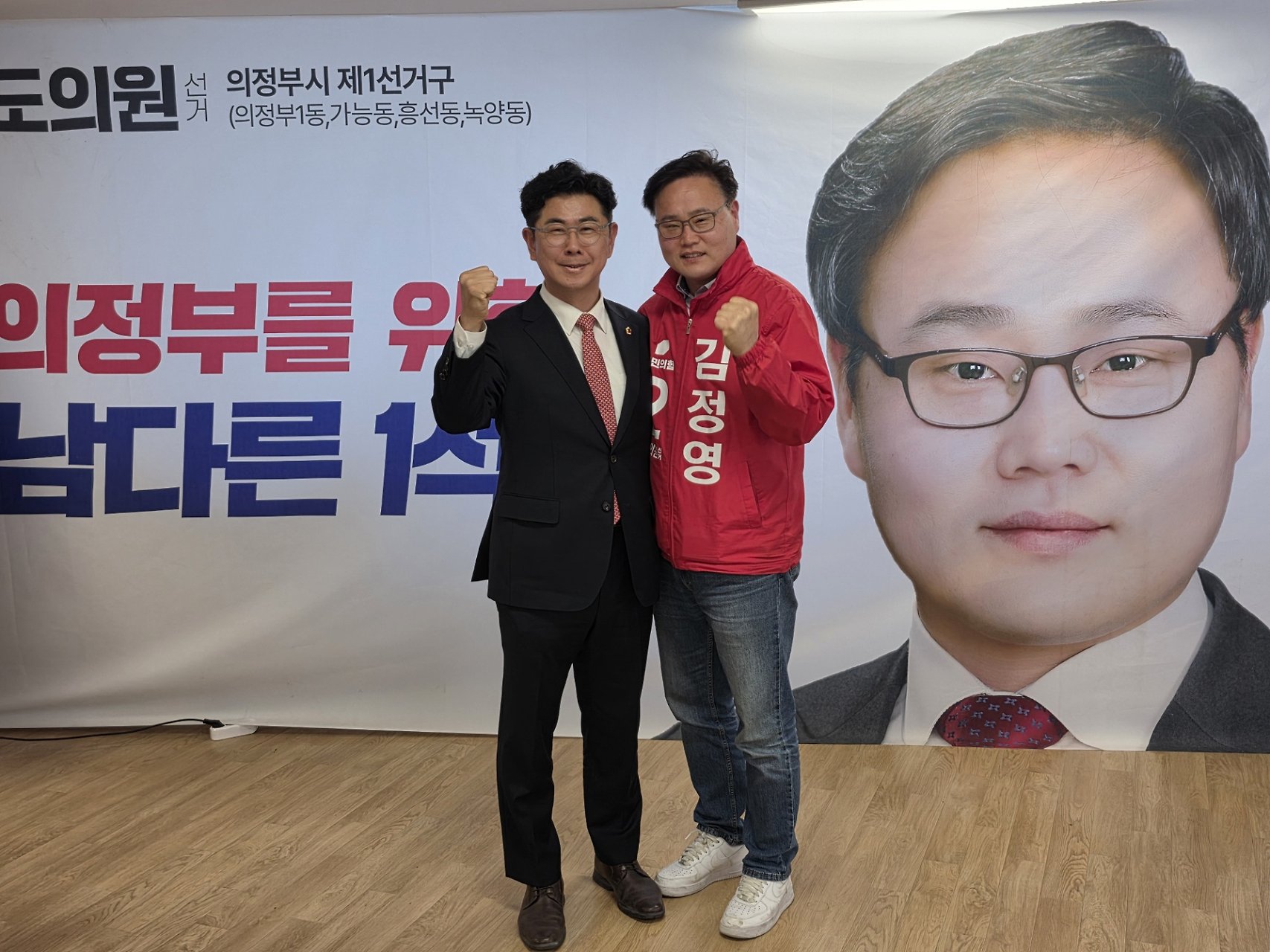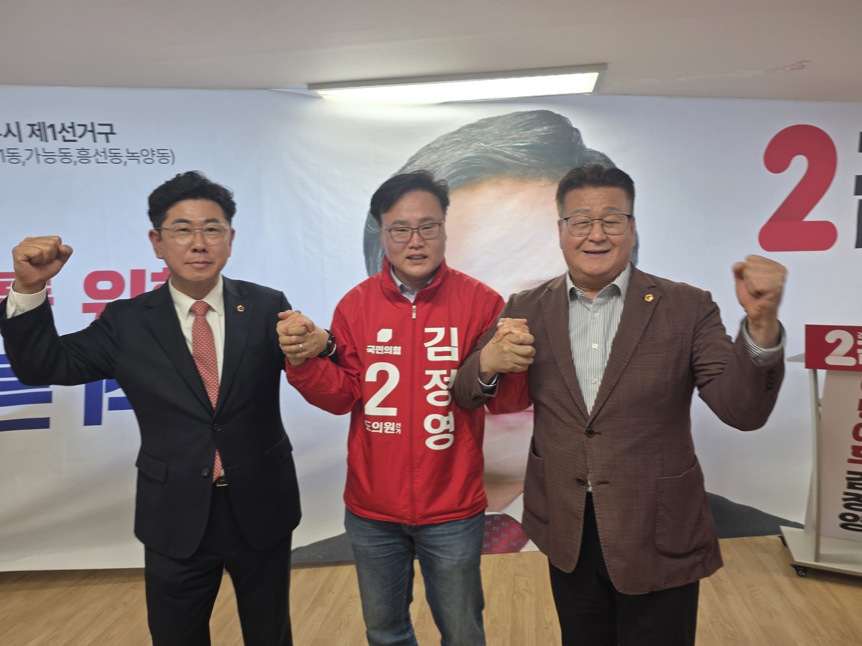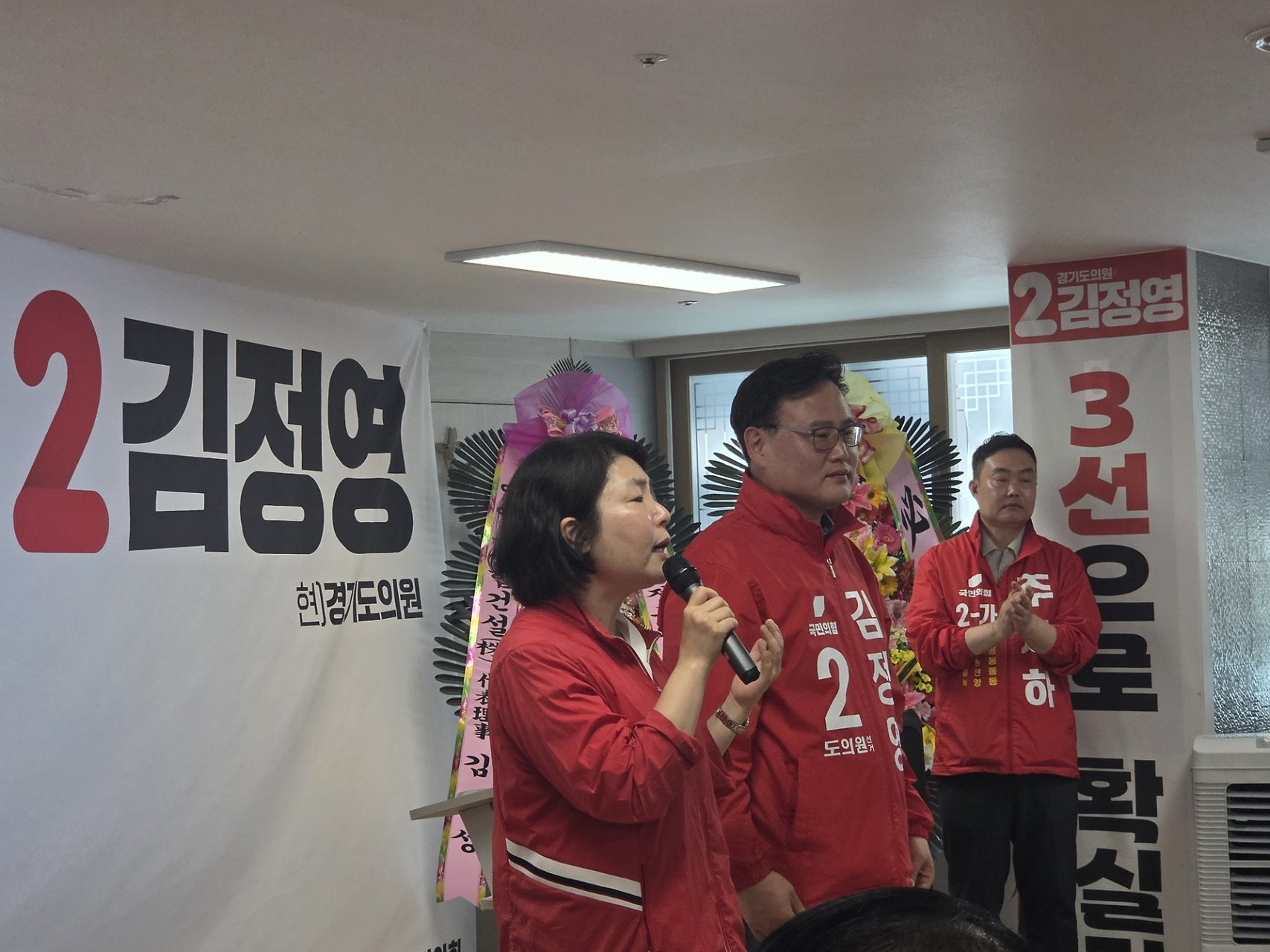 김정영 경기도의원 선거사무소 개소식에 참석해 진심으로 축하의 인사를 전했습니다.