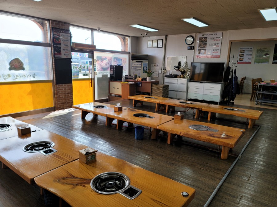 홀 중앙은 좌식 테이블이 배열되어 있고