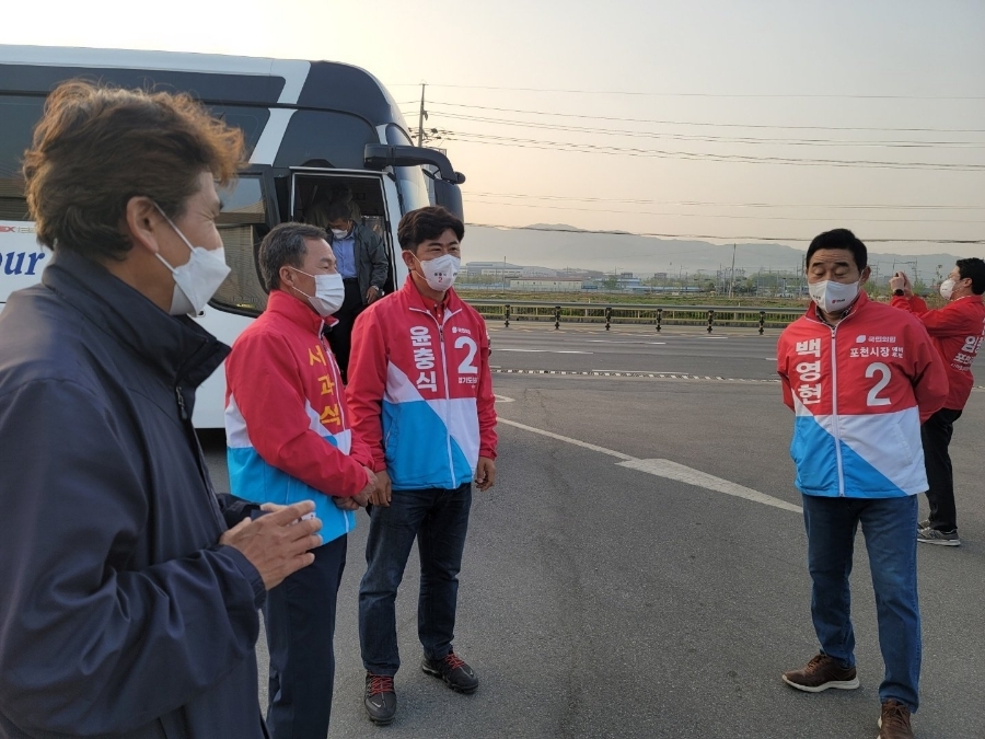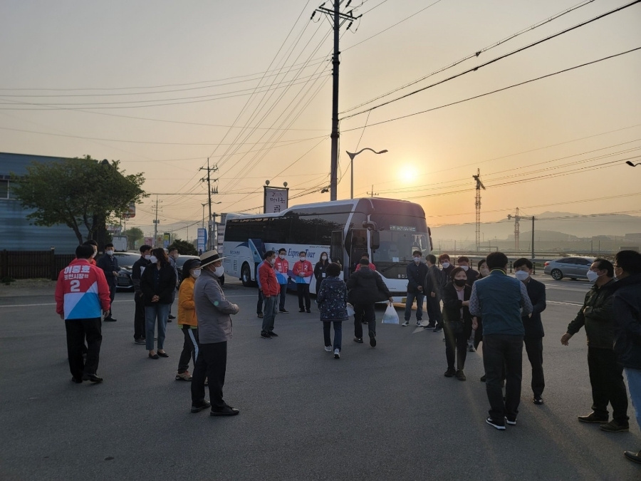 이른 아침 현장견학 가시는 포천동 농촌지도자(회장 오규식) 회원분들께 인사드렸습니다.