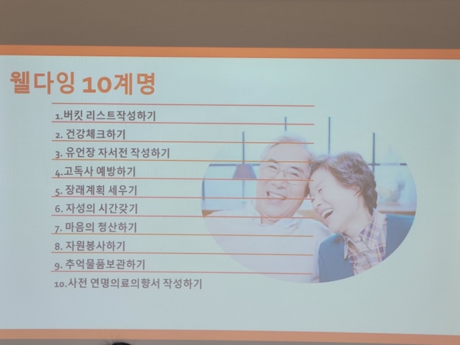 '보람된 삶 아름다운 마무리 웰 다잉' 이라는 주제로 강의가 있었습니다.