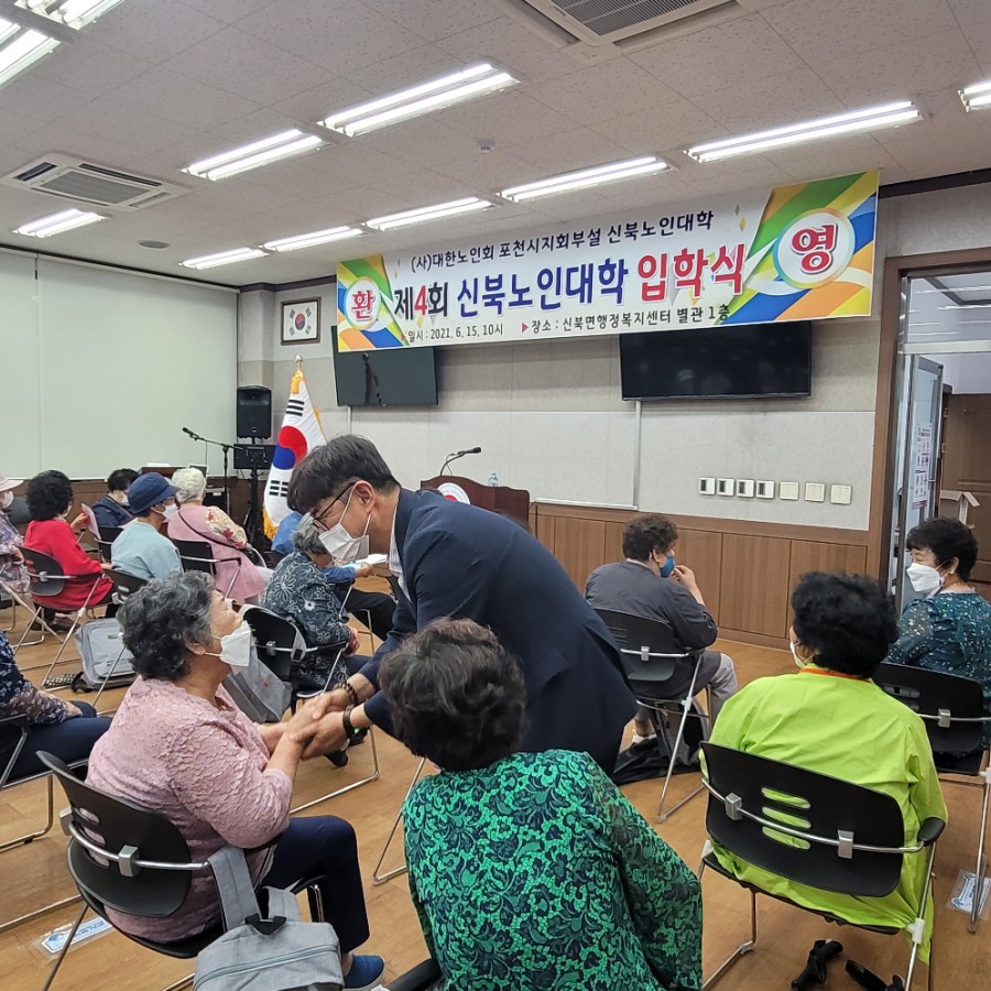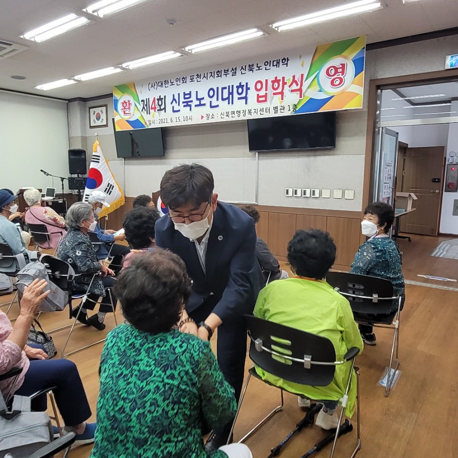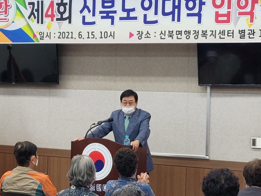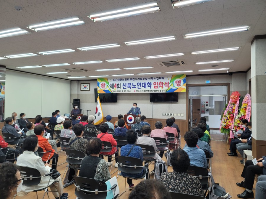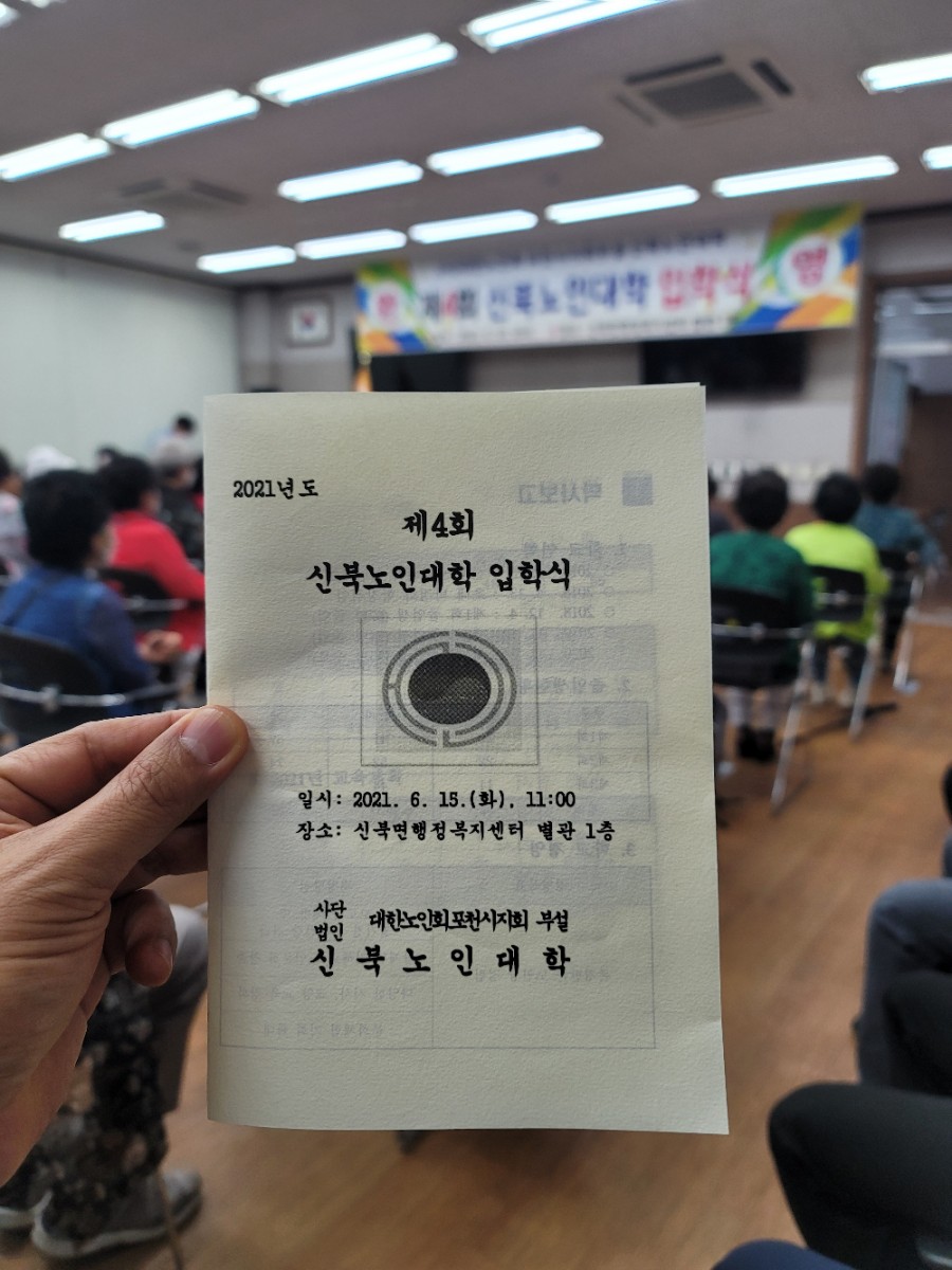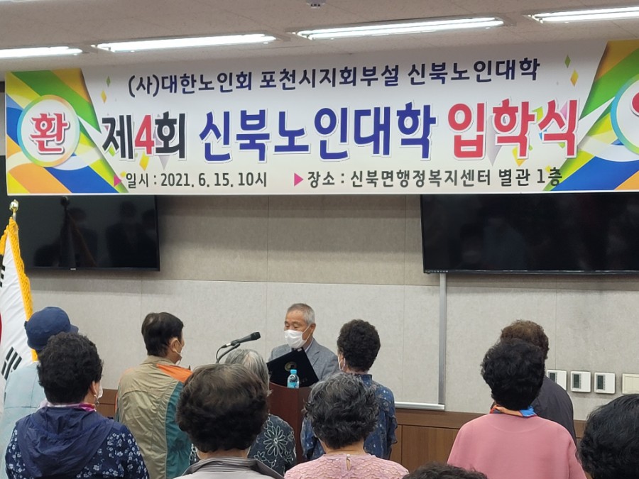어제 소흘노인대학 입학식에 이어 두번째로 신북노인대학 (학장 박정화) 입학식이 신북면사무소 별관에서 개최되었습니다.