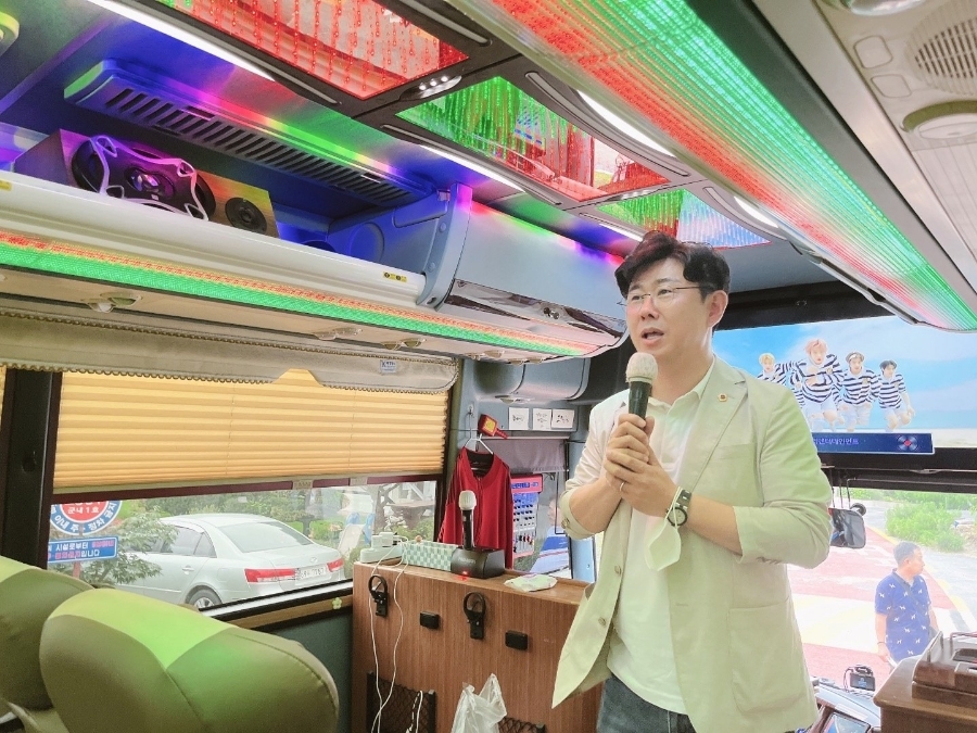 군내면 용정1리(이장 이지영) 주민분들께서 1박2일로 여행을 떠나시는길에 잘 다녀오시라고 인사드렸습니다.