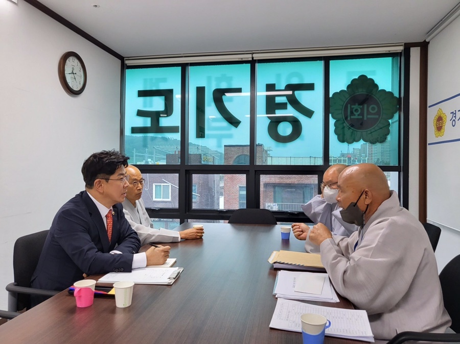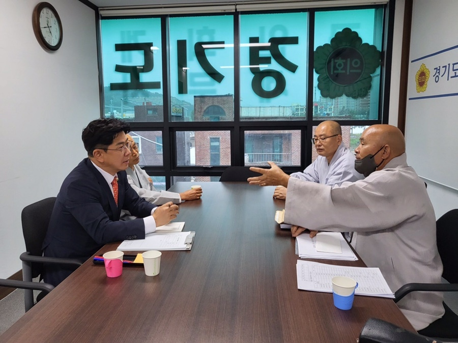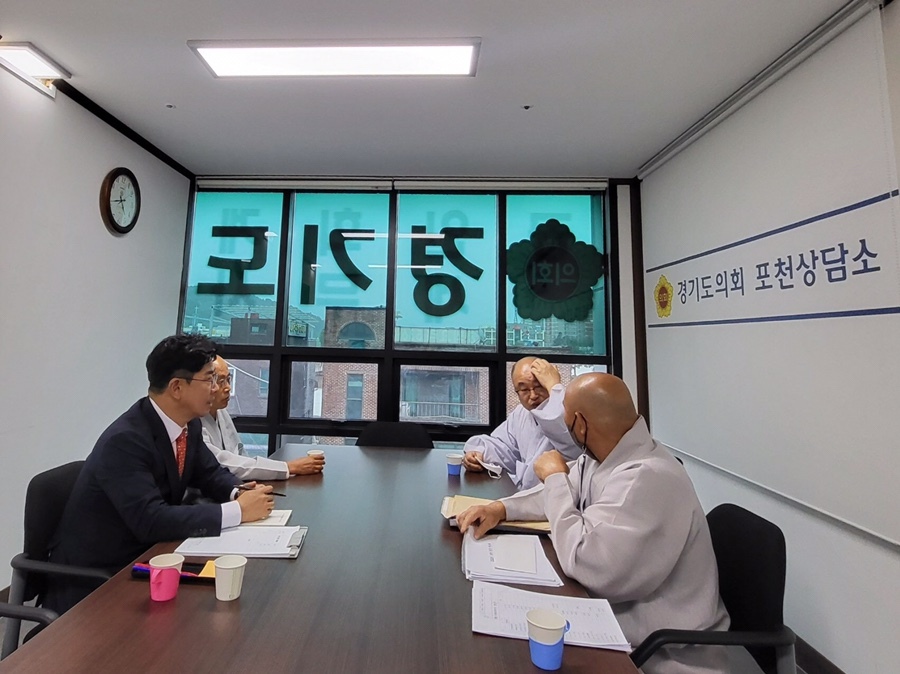 포천시 불교사암연합회 회장 왕산사 왕산 주지스님과 사무총장 천해사 법운스님 그리고 흥룡사 자공 주지스님께서 경기도의회 포천상담소를 방문하셔서 2023년에 개최될 포천 물골 연등축제 개최방안과 지원에 대한 깊은 논의가 있었습니다.