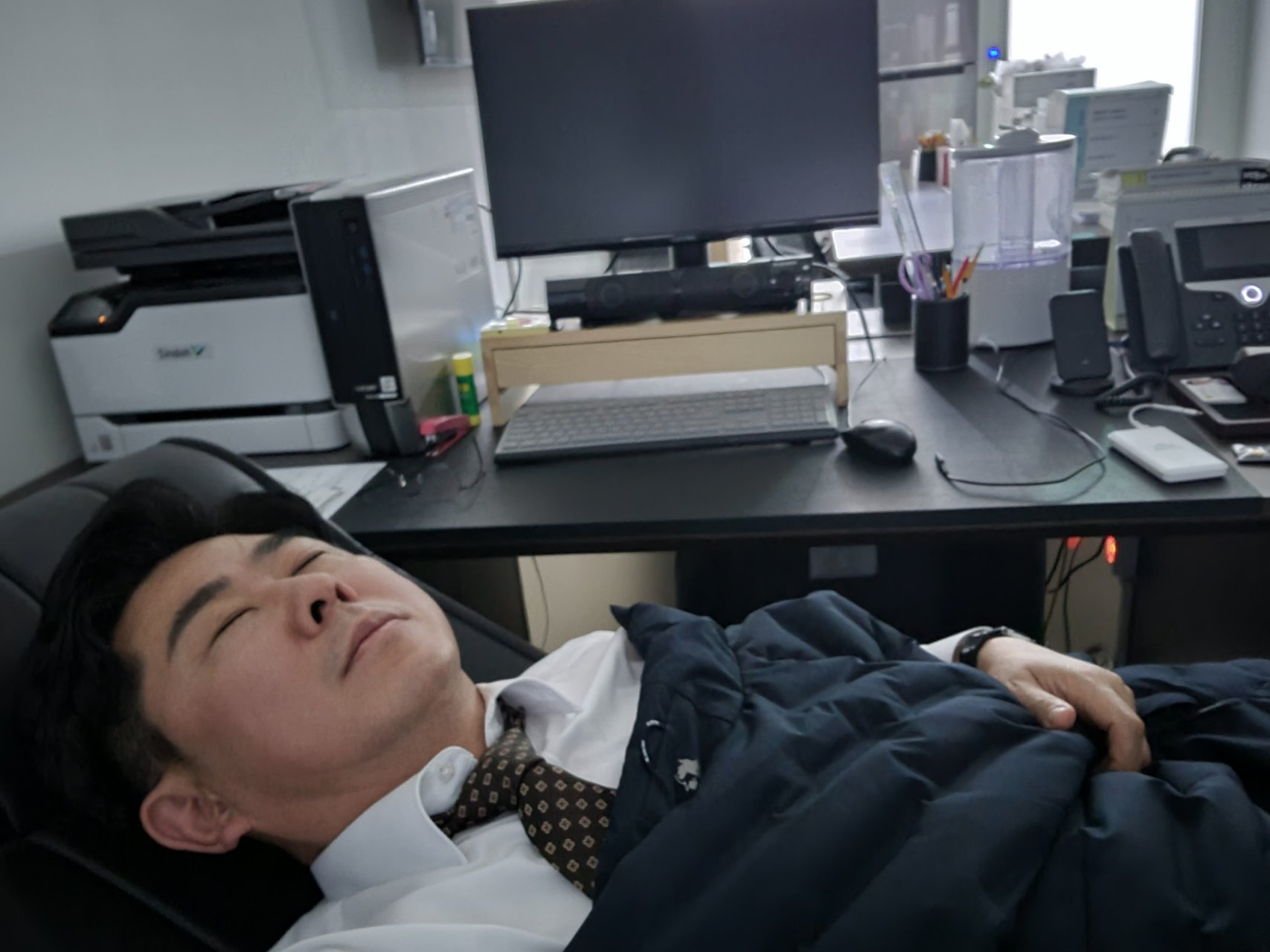 예산결산특별위원회 계수조정 협의가 되지 않아 예정된 회기 내에 마무리 못하고 자정에 회기연장과 차수 변경을 하고 밤새 사무실에서 쪽잠을 자며 대기하였으나 결국 새벽을 넘기고 아침이 되어서도 아직 대기 중입니다.