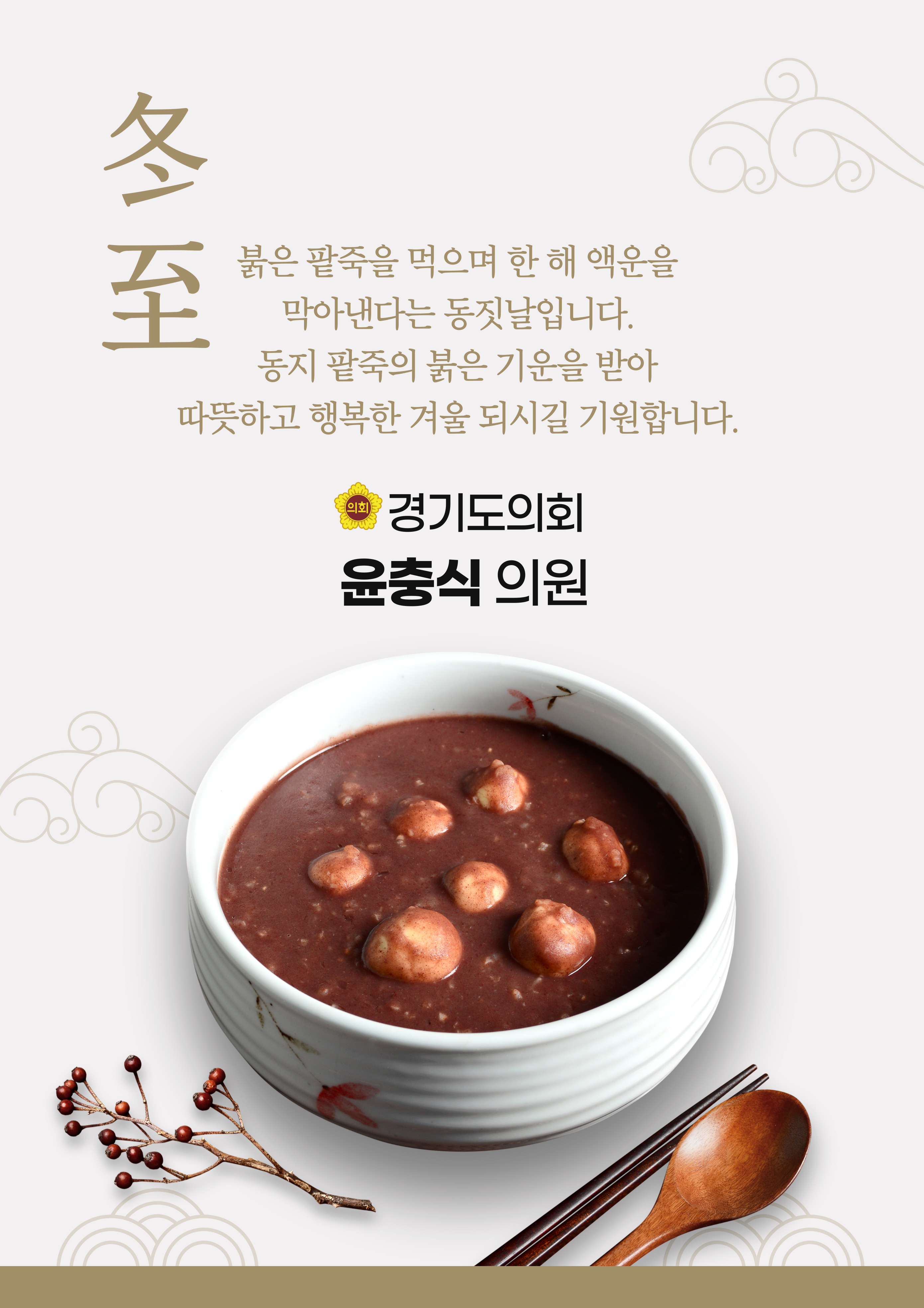 오늘은 24절기 중 스물두 번째 절기인 동지입니다. 우리나라는 예부터 동짓날에 팥죽을 만들어 나눠 먹는 풍습이 있습니다. 동지 팥죽은 귀신을 쫓고 무병장수를 기원하는 의미가 있고, 먹거리가 부족한 겨울에 영양분이 풍부한 팥으로 양분을 보충하라는 선인들의 지혜도 담겨 있습니다.추운 겨울, 건강과 행복을 기원하는 따뜻한 팥죽 한 그릇 드시고 희망찬 한 해를 맞이하시길 바랍니다🫶🏻