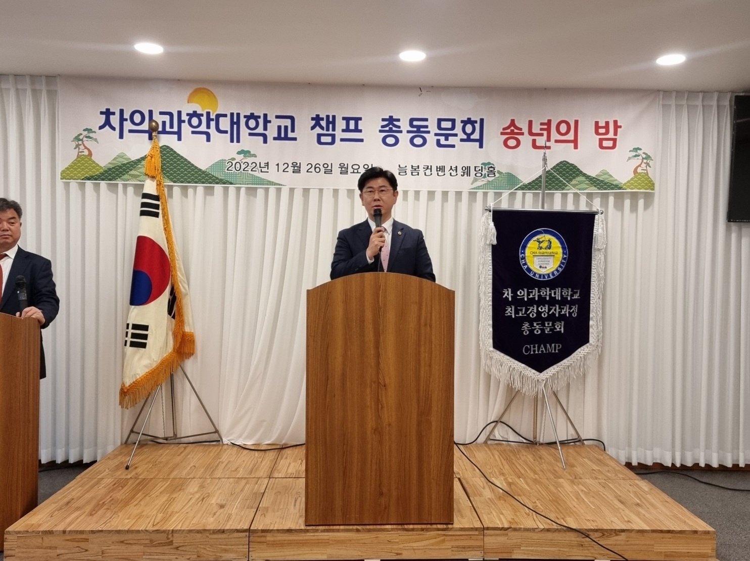 차의과학대학고 최고경영자 과정(챔프) 총동문회(회장 김웅기) 송년의 밤에 참석해 최춘식 국회의원님 표창장을 대리 시상하고 축하의 말씀을 전해드리고 왔습니다.